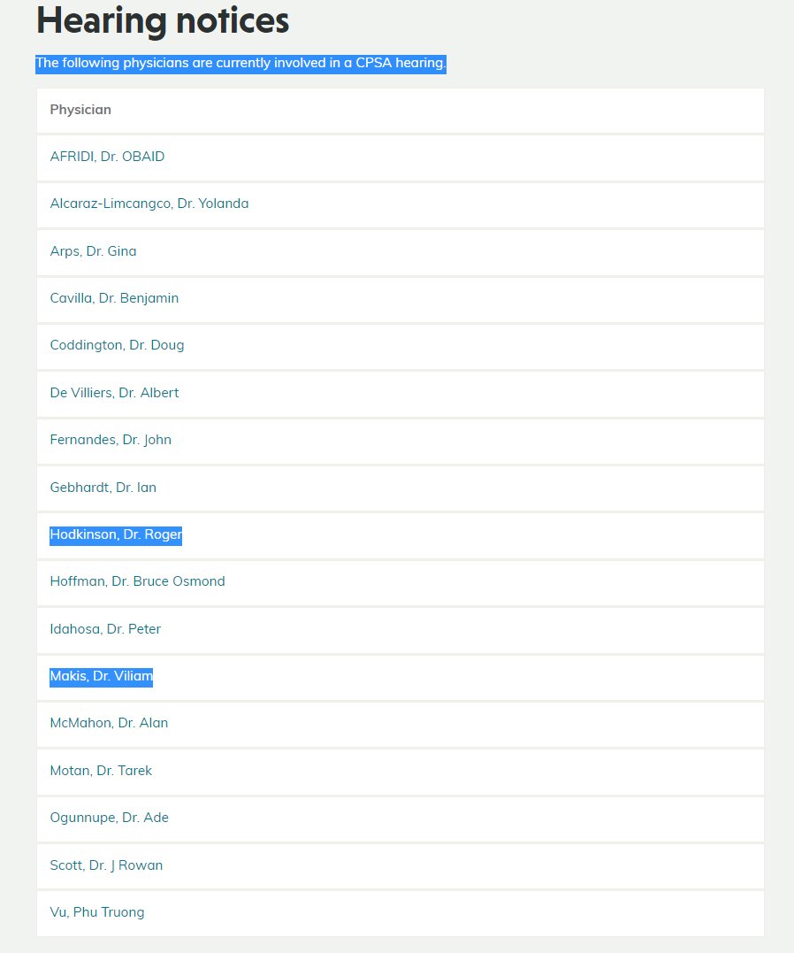 Protected by College of Physicians and Surgeons of Alberta who re-instated his medical license in April 2021 and allowed him to practice medicine from April 2021 until Feb.2023 when he retired, and kept a clean record of his medical license.