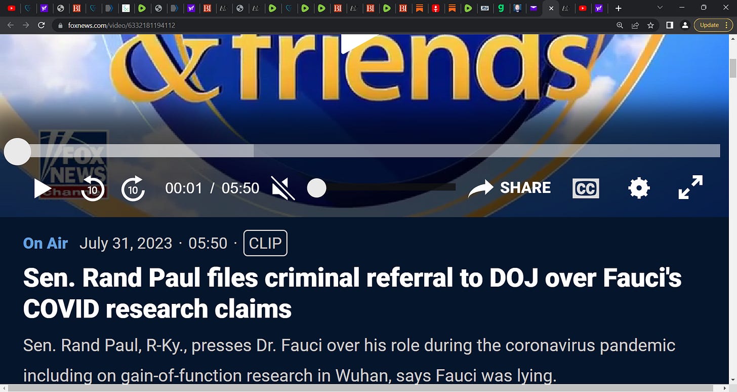 ‘Kentucky Senator Rand Paul (R) joined "Fox & Friends" Monday to discuss why he says Dr. Anthony Fauci is lying about his involvement with coronavirus gain-of-function research. Paul said Fauci lied to Congress, which is a felony, about the origins of coronavirus and the Wuhan, China lab research.’