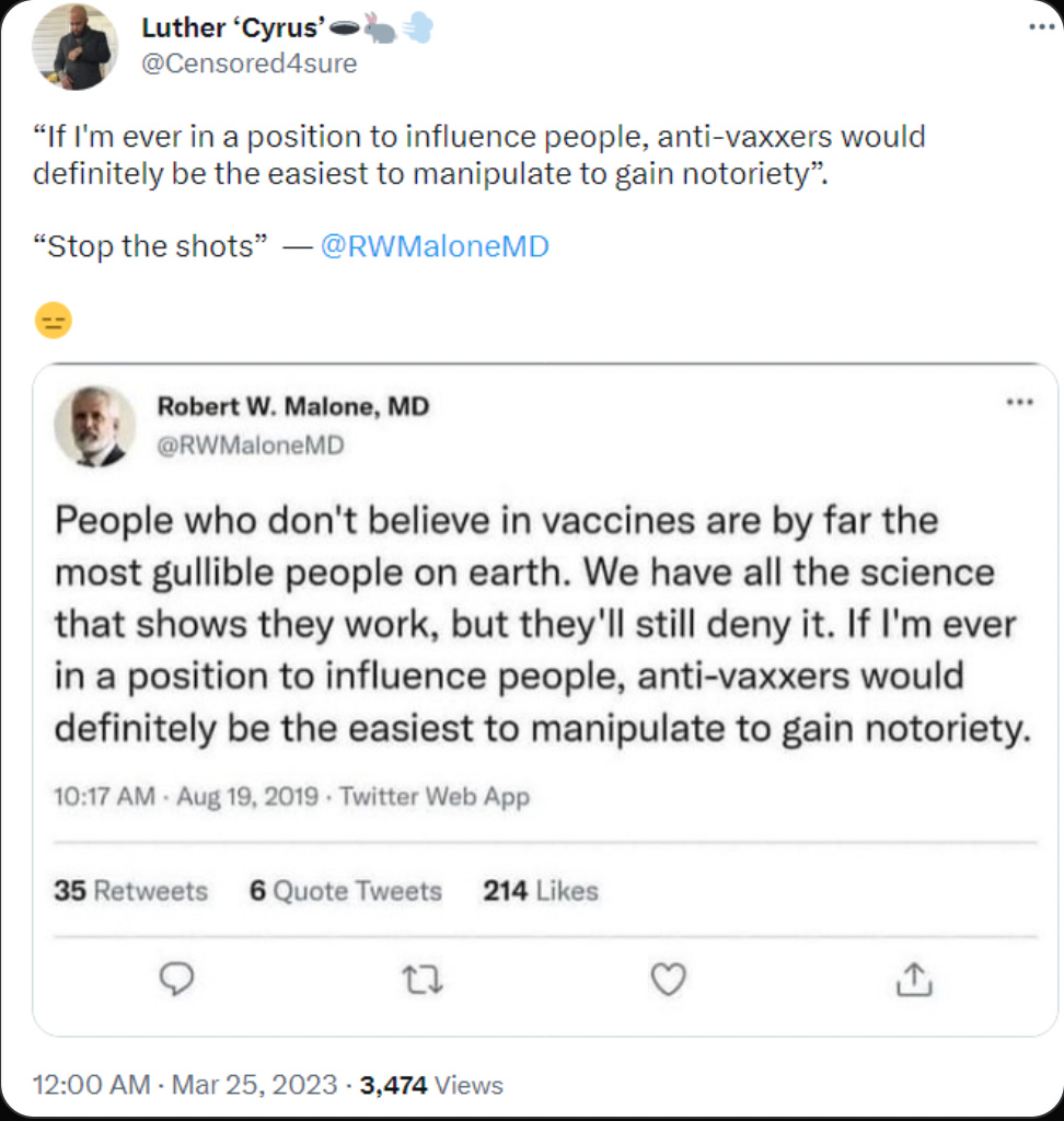 Support Sage's substack! Did Malone really say he could (w) manipulate anti-vaxxers for fame? I included that Tweet by him but unsure if real; I do not wish to say it is if not; can someone verify?