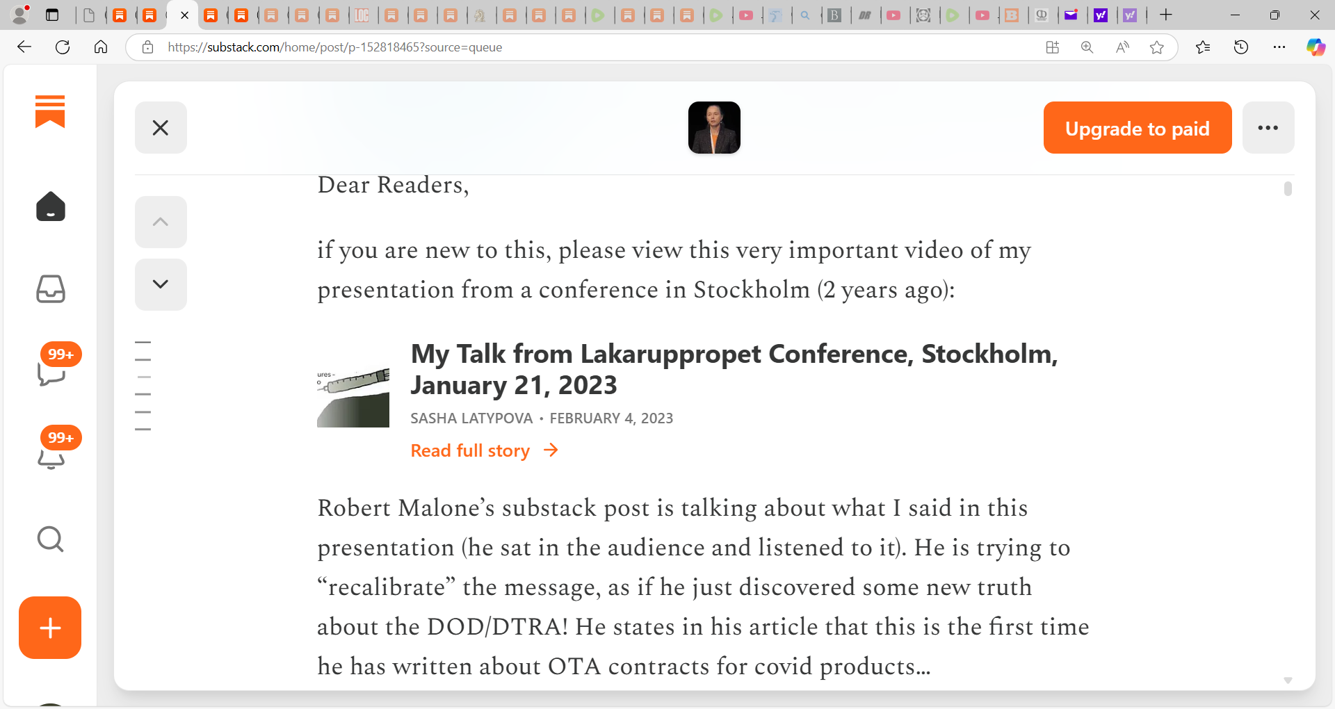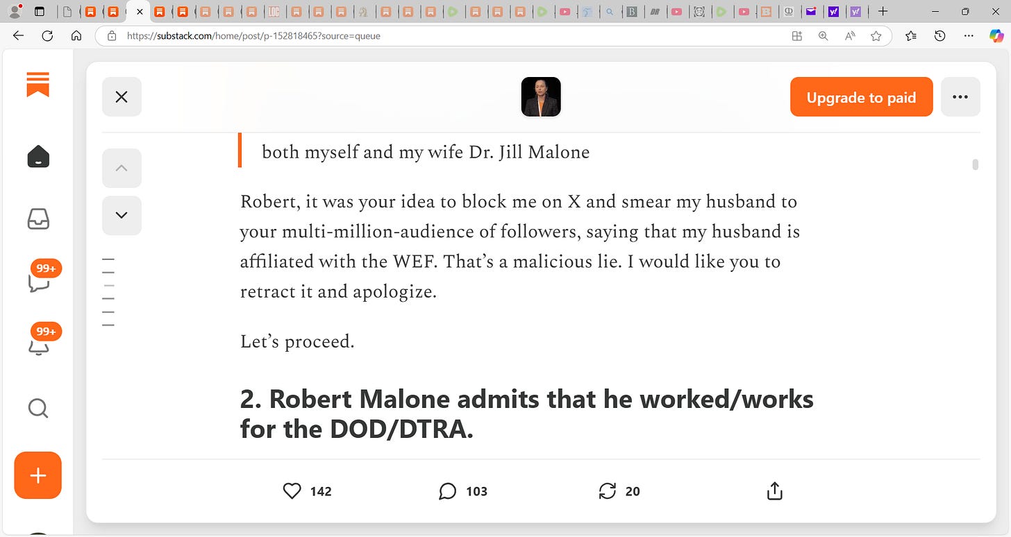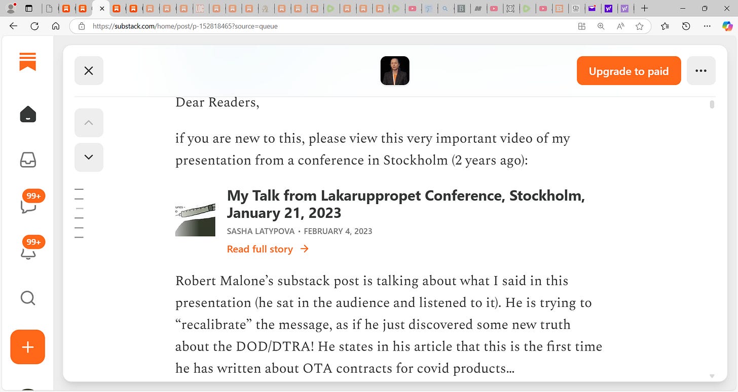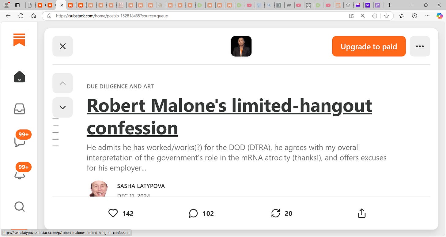 BOOM! Sasha Latypova drops a MOAB on Malone! "Dear Robert, I hope you will ultimately get investigated for your role in the largest atrocity known to mankind (faked “pandemic” and mass homicidal