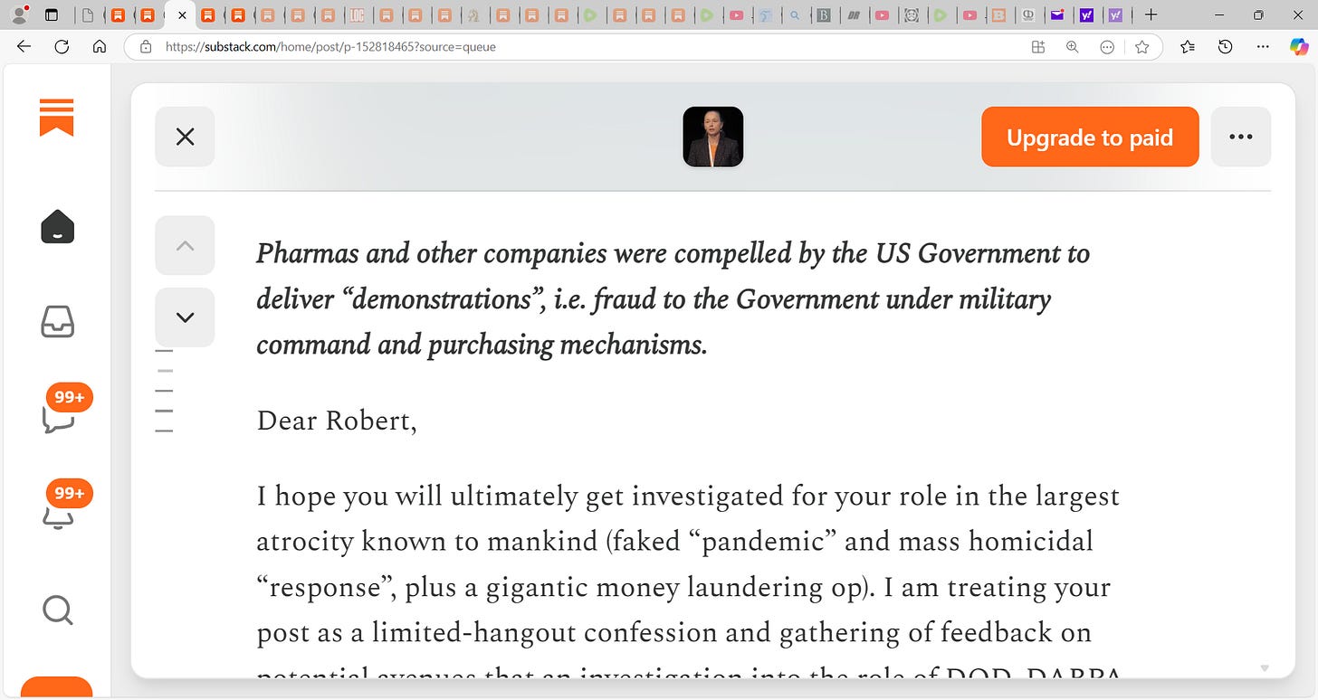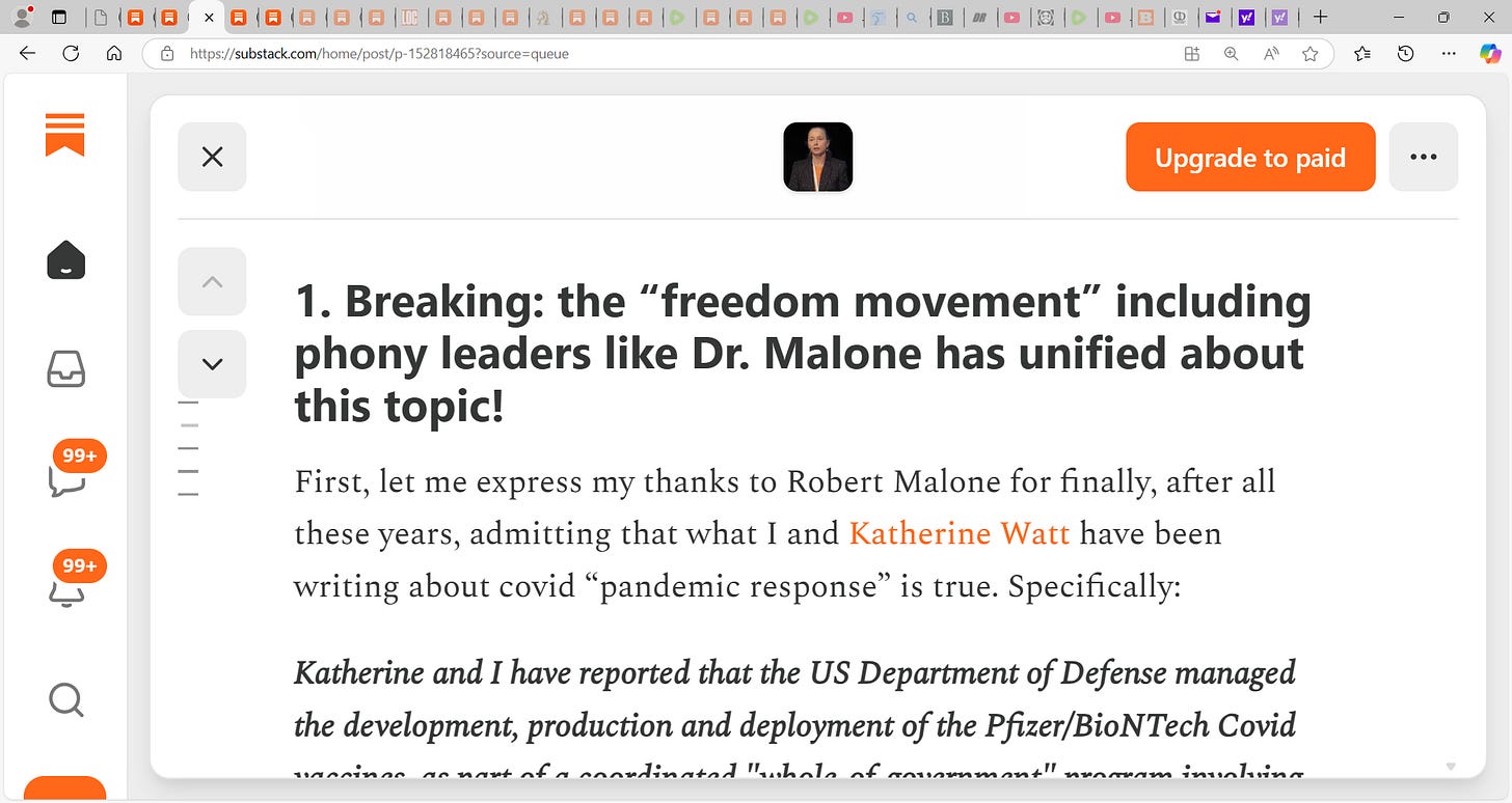 On December 8th of the Good Lord’s year 2024, i.e. 4 years after the fact, this is the first instance of Robert Malone addressing this very important issue: