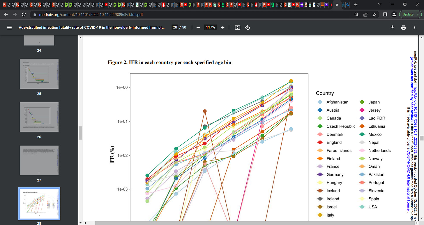 We knew the data over 2 years ago, that the age-stratified infection fatality rate of COVID-19 in the non-elderly non-vaccinated population was close to zero. That COVID was amenable to risk-stratification and that baseline risk was prognostic on severity of outcome. That there was a steep age-risk curve with a 1000 fold difference in risk of death between 85 year old granny and 10 year old Johnny. We knew it, we told them this but they, CDC, NIH, Fauci et al. will not listen.