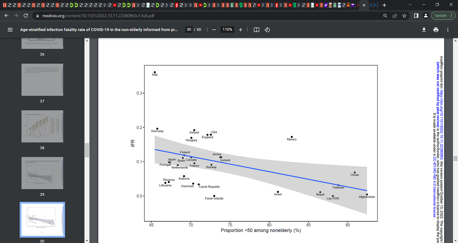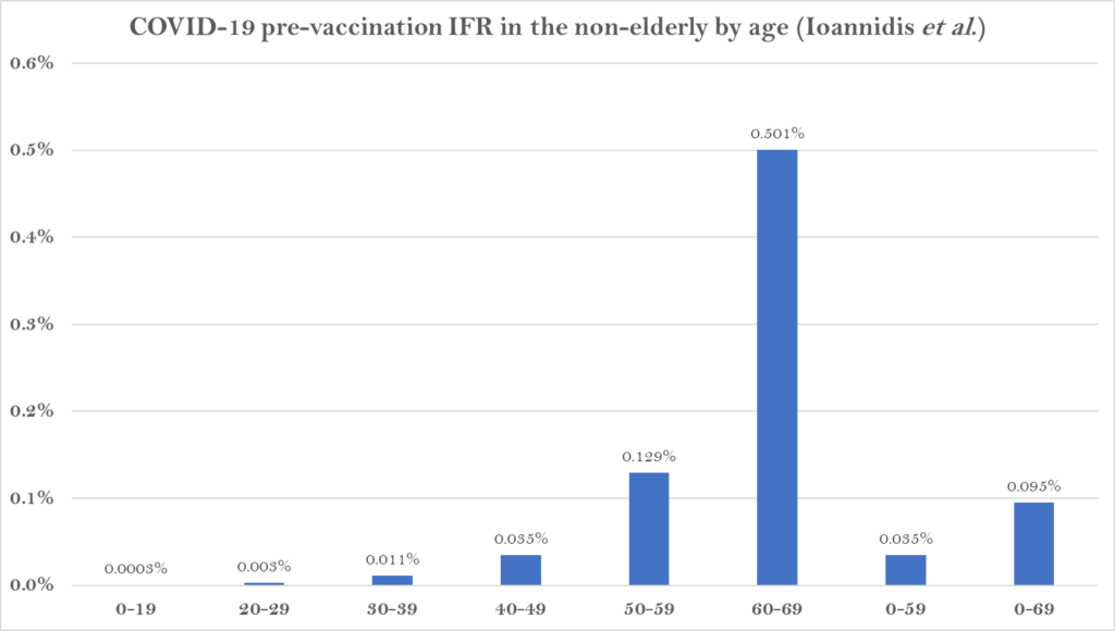 The current analysis suggests a much lower pre-vaccination IFR in non-elderly populations than previously suggested.”