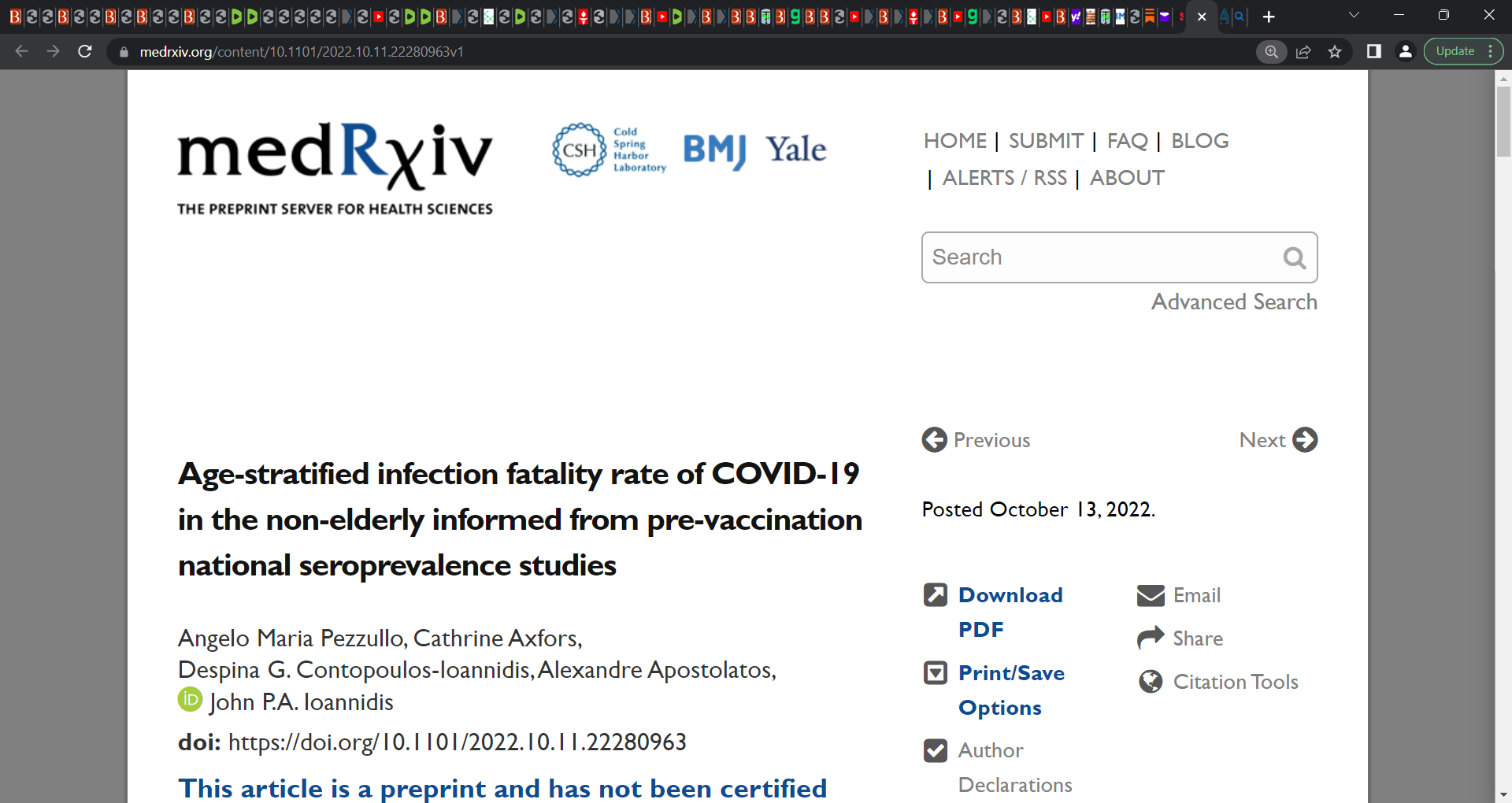 Ioannidis Oct 2022 publication now