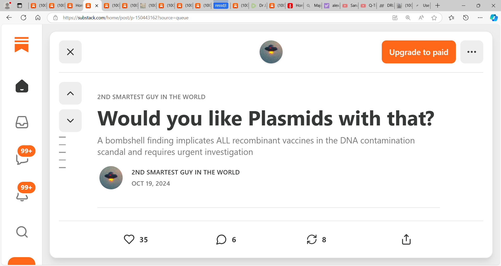 BOOM: 'Would you like Plasmids with that? A bombshell finding implicates ALL recombinant vaccines in the DNA contamination scandal and requires urgent investigation'; 2ND SMARTEST GUY IN THE WORLD