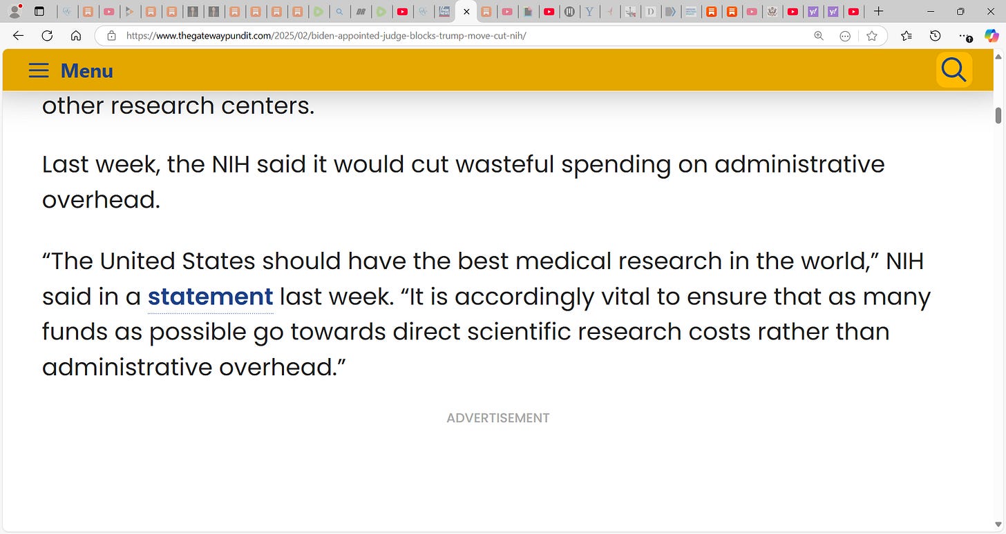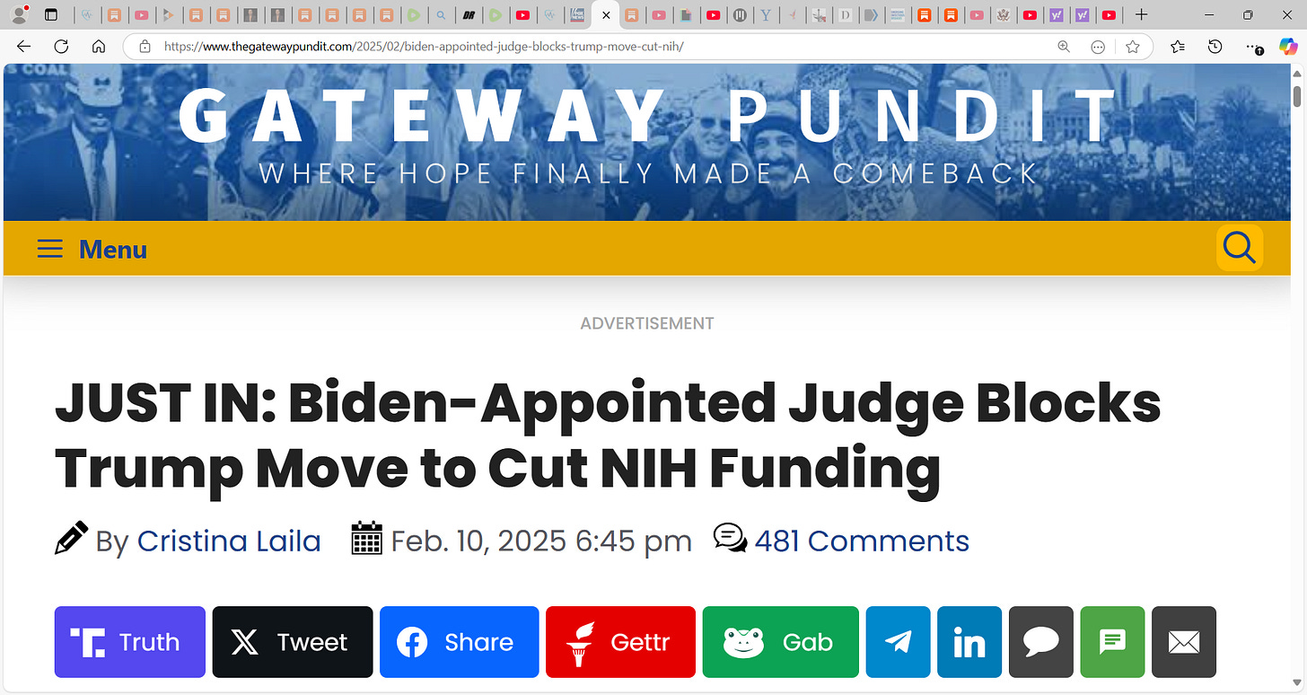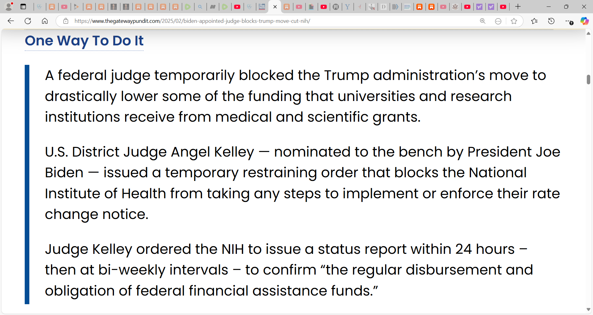 Breaking: A federal judge blocked the Trump Admin’s move to cut billions in funding to the National Institute of Health (NIH); US District Judge Angel Kelley, a issued a restraining order to block