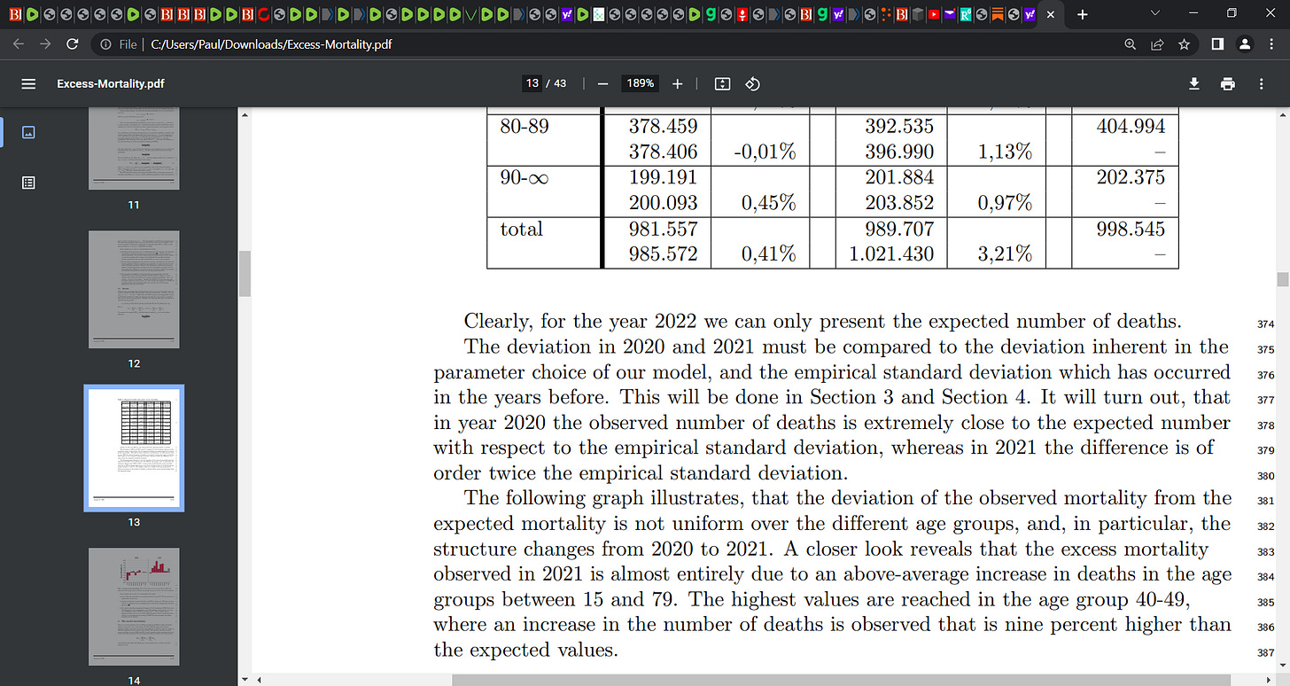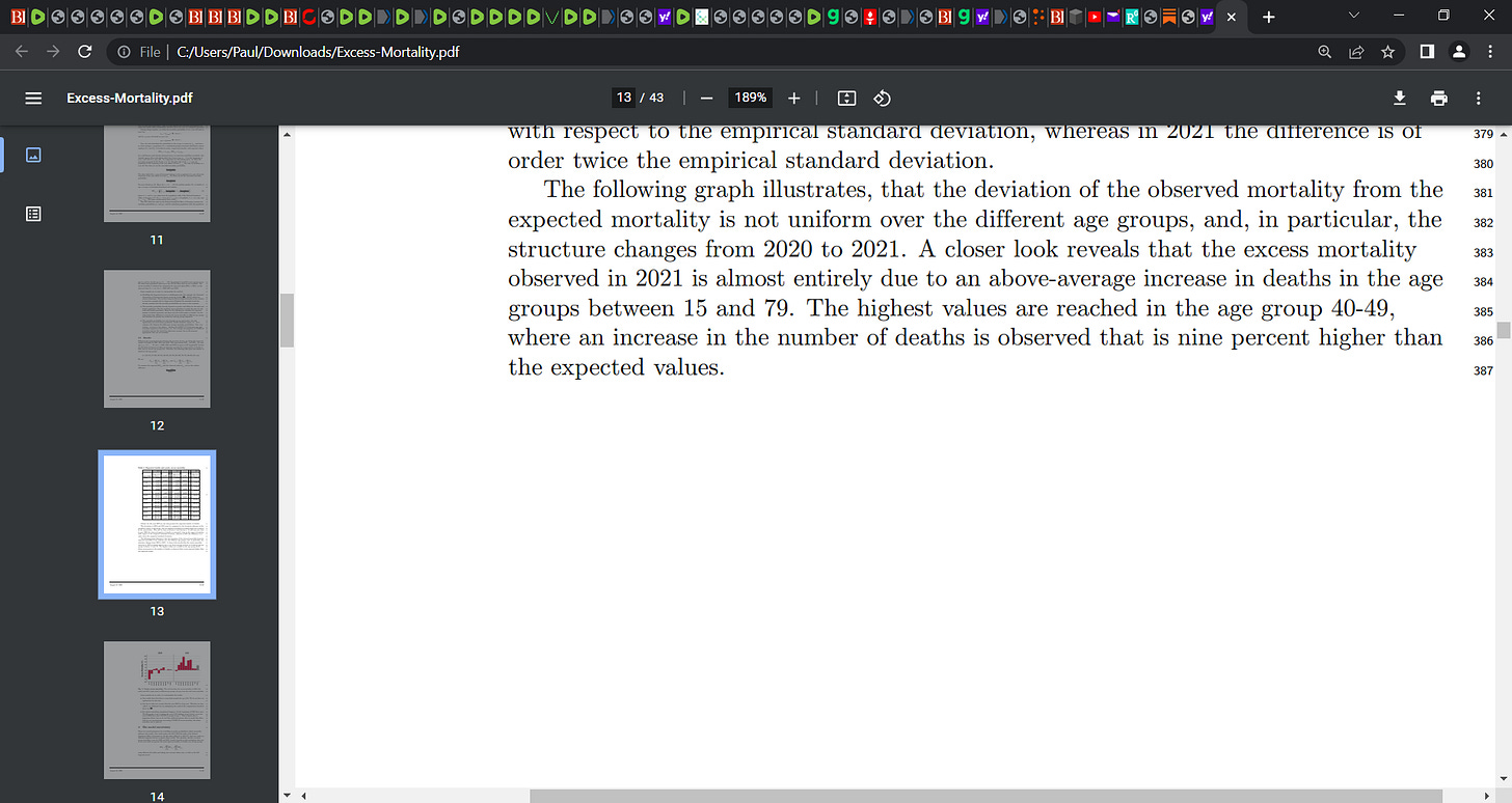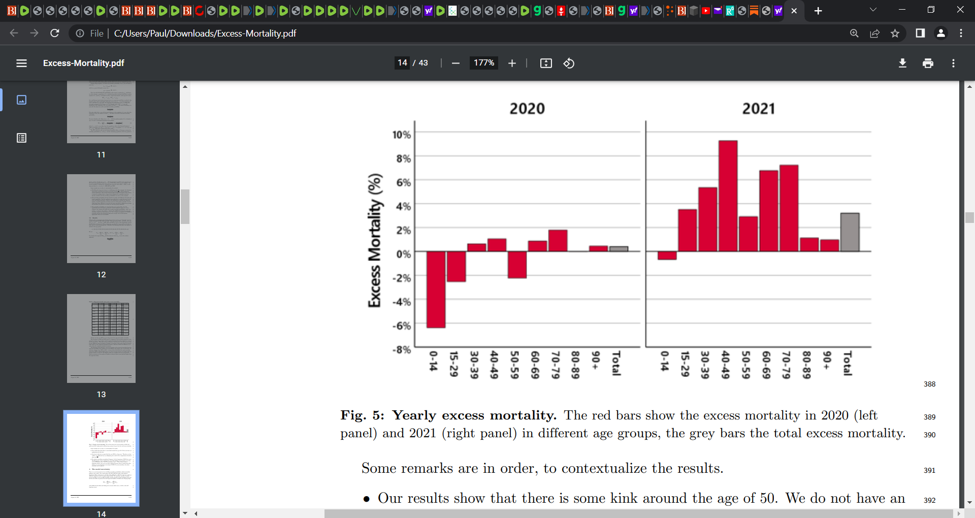 So what do we see exactly in the report? We see excess mortality in 2021 is most strikingly elevated in ages 15 to 79 and critically elevated in 40 to 49 years old.