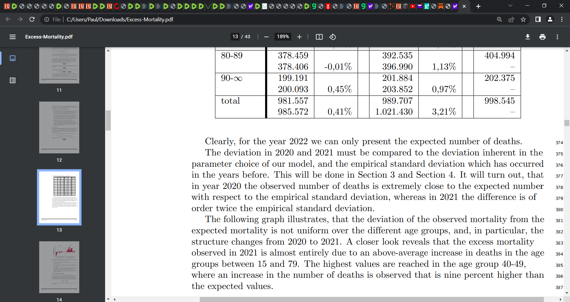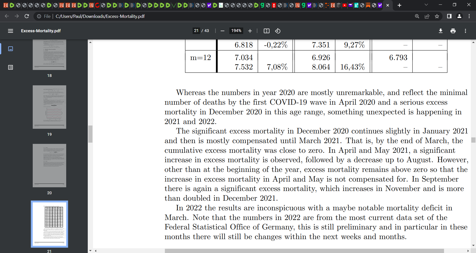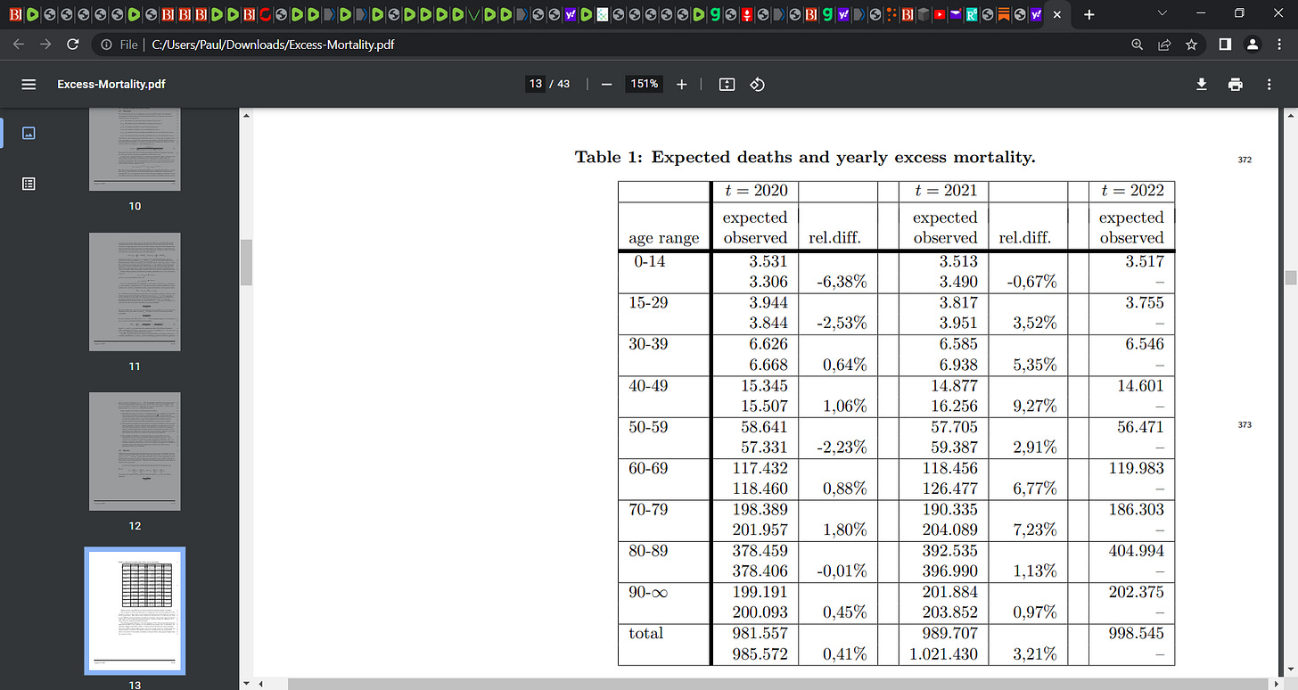 So what do we see exactly in the report? We see excess mortality in 2021 is most strikingly elevated in ages 15 to 79 and critically elevated in 40 to 49 years old.