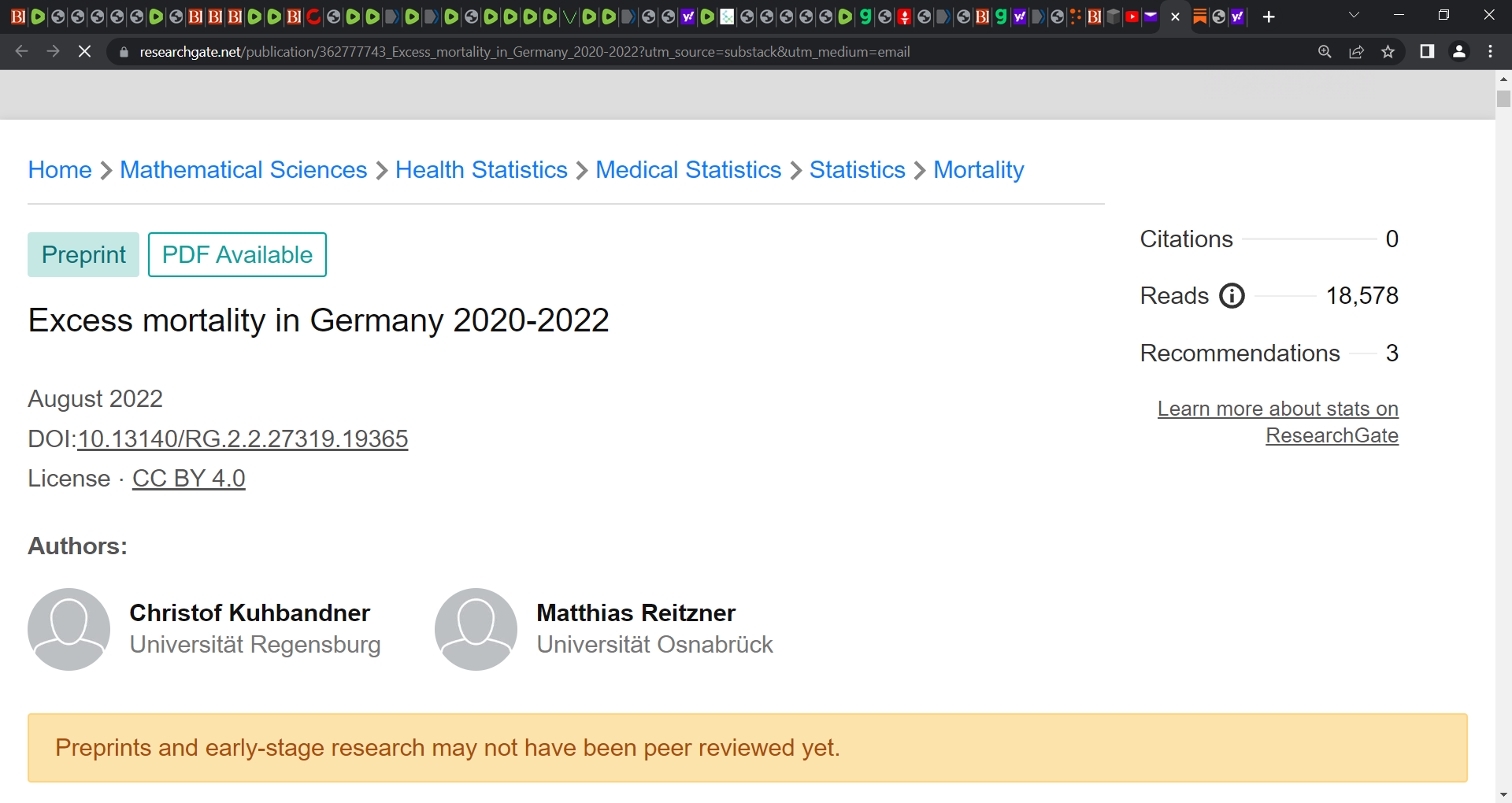 BREAKING: Excess mortality in Germany 2020-2022 (Kuhbandner & Reitzner): found in 2020, the observed number of deaths was close to expected, but in 2021 (April on), observed number of deaths was 2