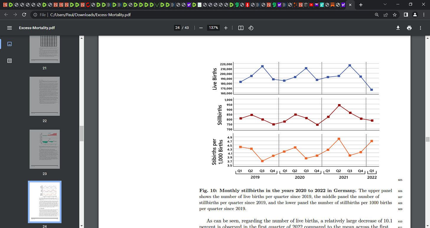 standard deviations above expected number (age groups between 15 to 79); similar mortality pattern was observed for stillbirths; Something must have happened in April 2021; YES, vaccines in Germany!