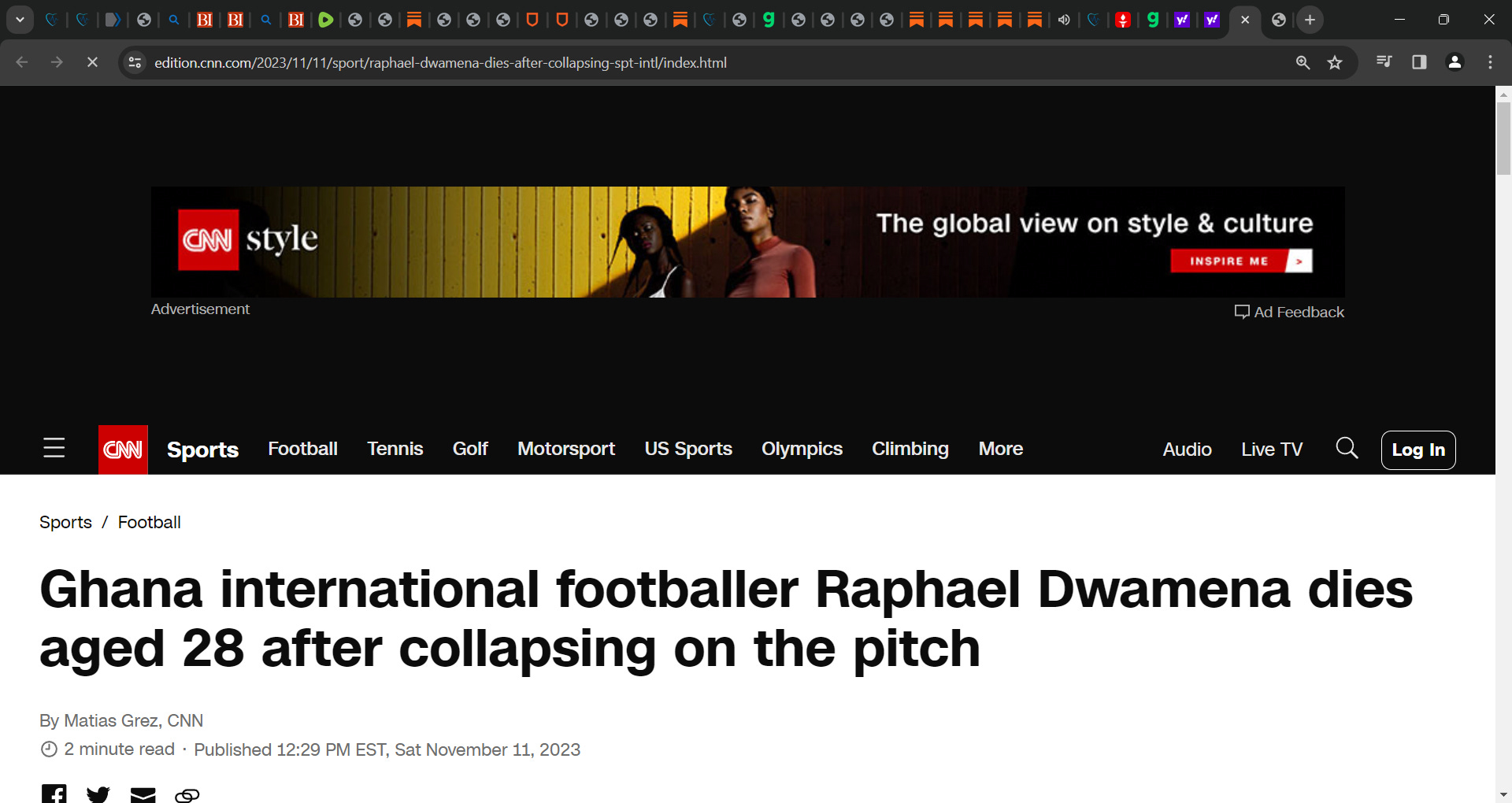 While no official details have been released on Dwamena’s death, video appears to show him collapsing on Saturday in the 24th minute of an Albanian top division match between Dwamena’s team KF Egnatia and Partizani.’