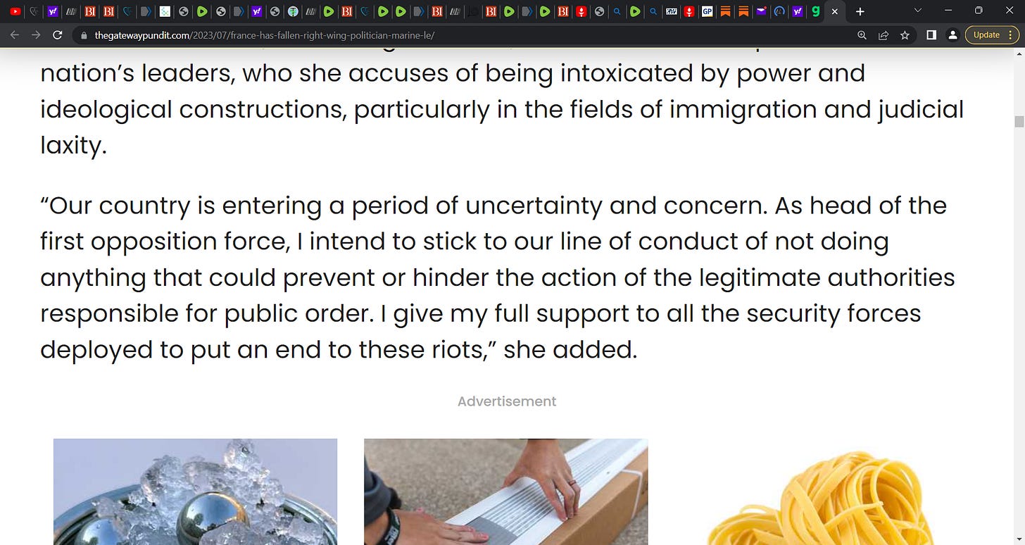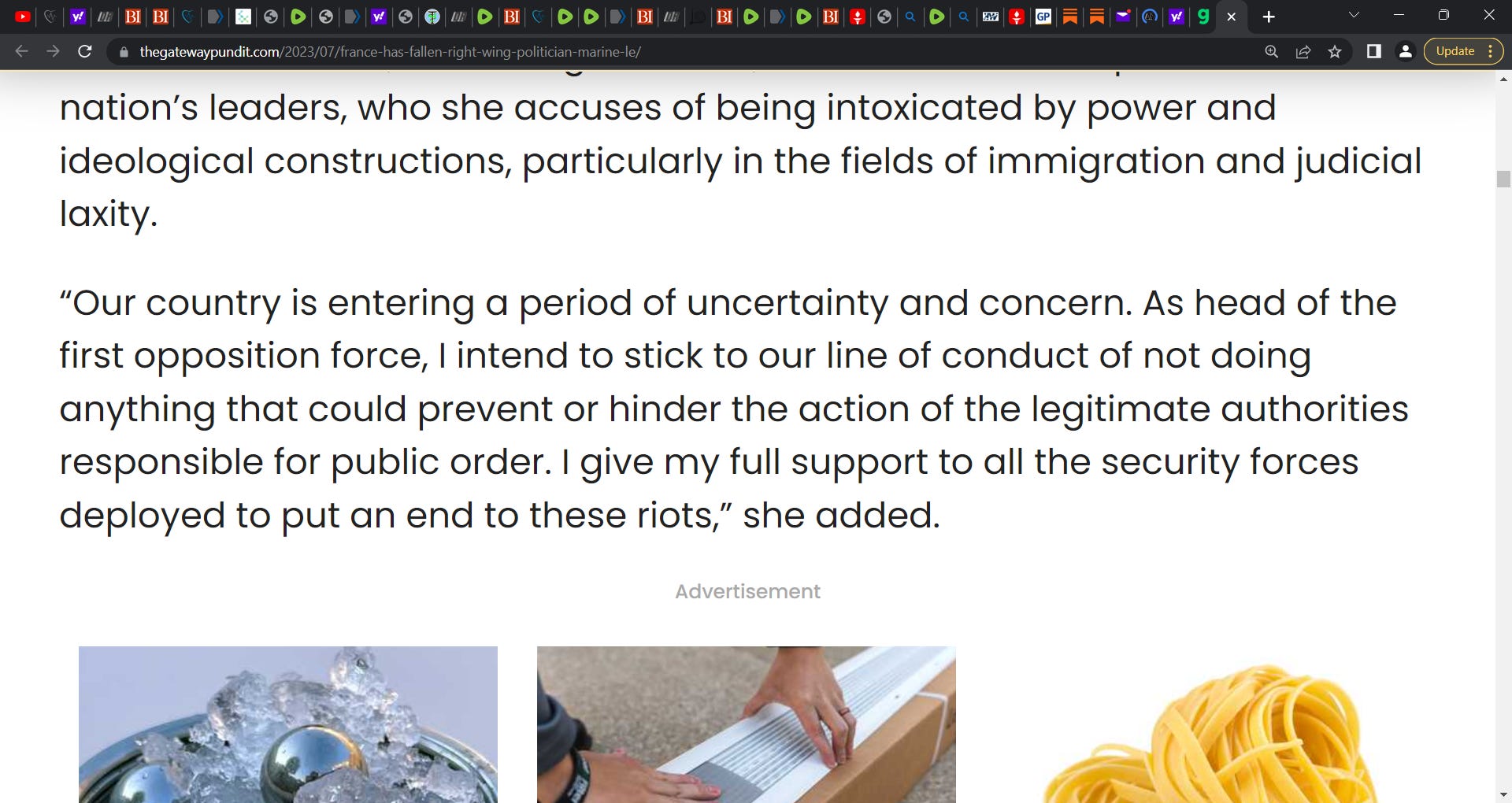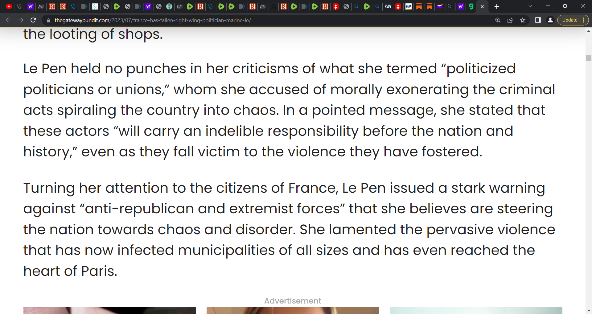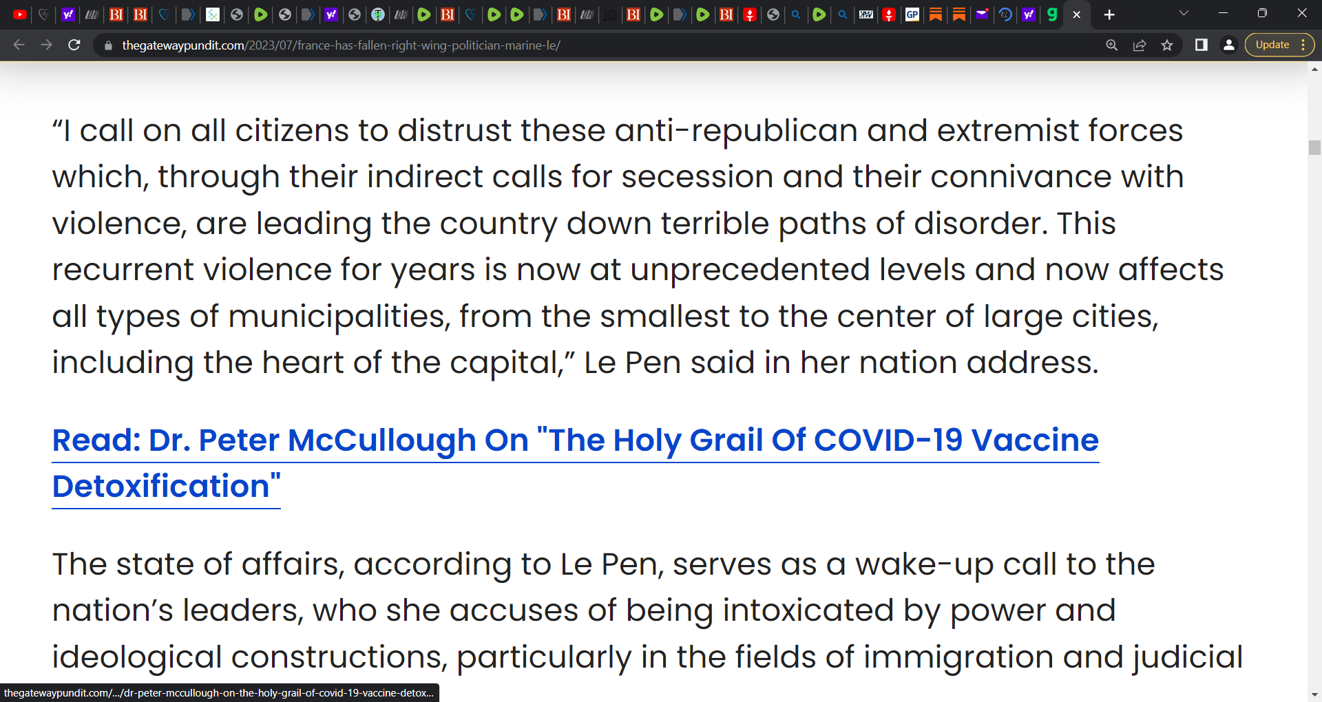 painted a sobering picture of a nation in turmoil, referencing attacks on people and property, assaults on police officers; IMO the solution, secure your French borders, remove all islamists