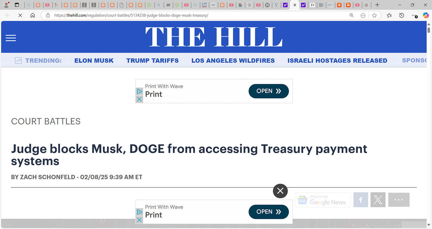 BREAKING! Judge blocks Elon Musk access to Treasury payment systems of social security, tax information etc.; "A federal judge, citing a risk of “irreparable harm,” has blocked/restricted Musk
