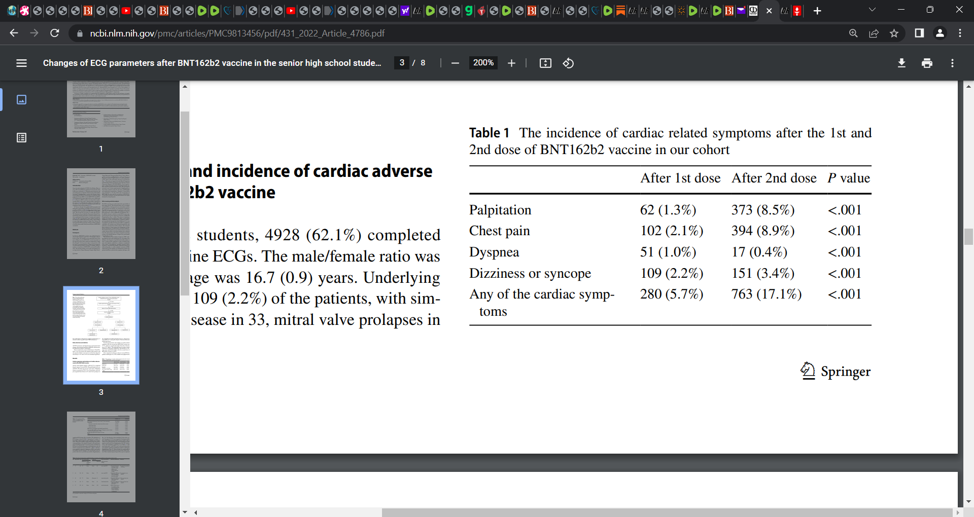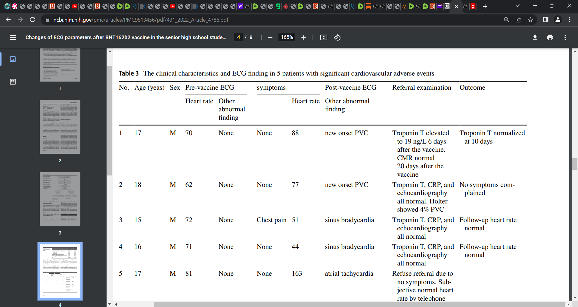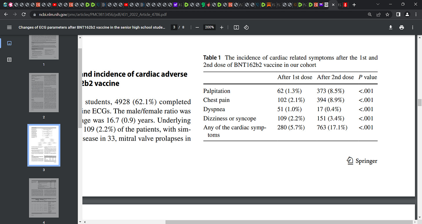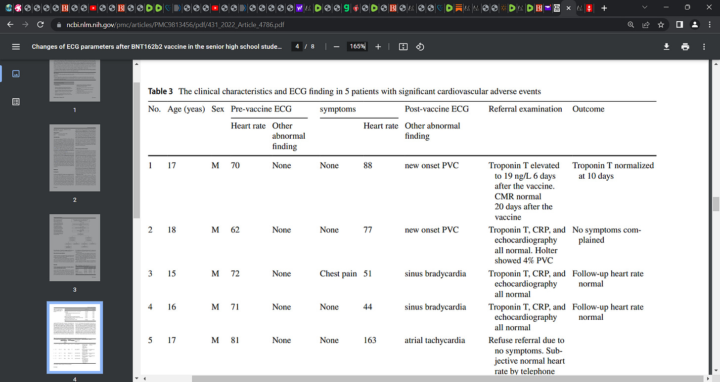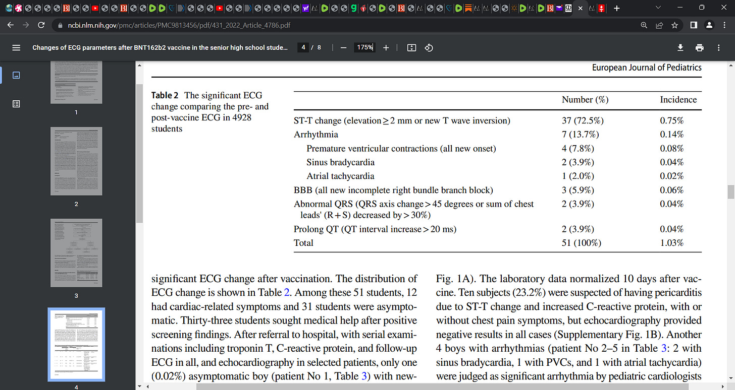 51 students presented with marked substantial changes in ECGs post the second Pfizer injection. ‘Abnormal ECGs were obtained in 51 (1.0%) of the students’.
