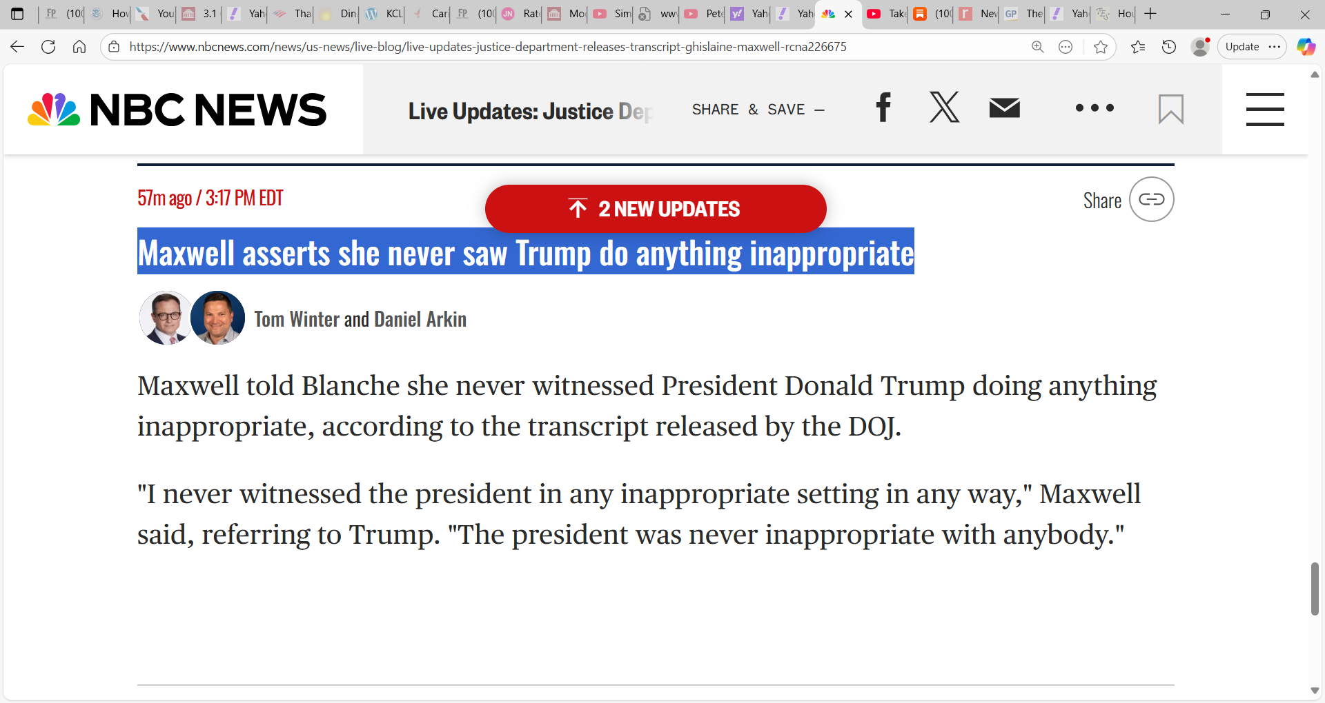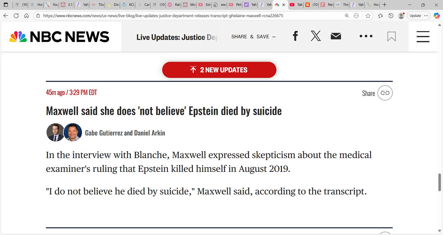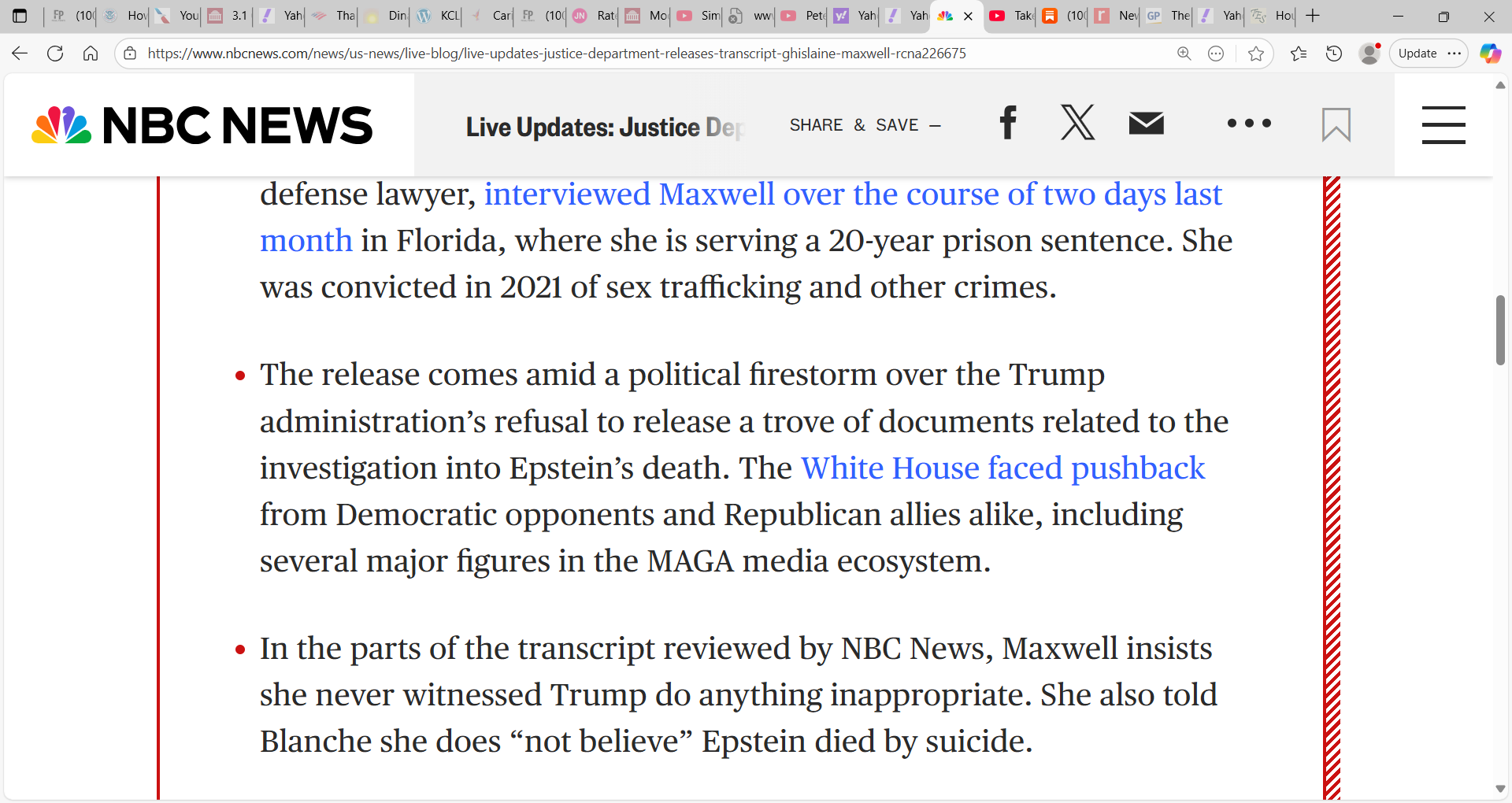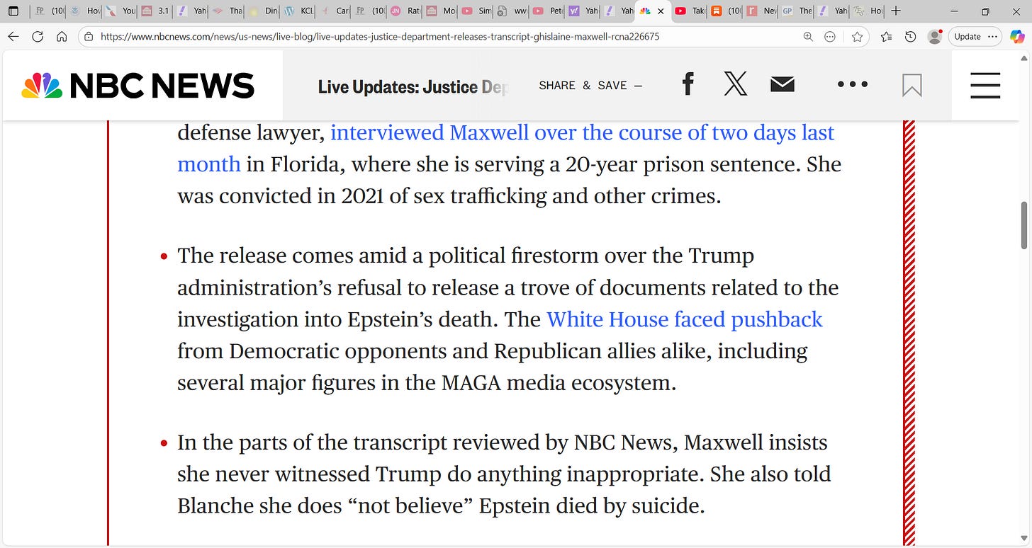“In the parts of the transcript reviewed by NBC News, Ghislaine Maxwell insists she never witnessed Trump do anything inappropriate. She also told Blanche she does “not believe” Epstein died by suicide.”