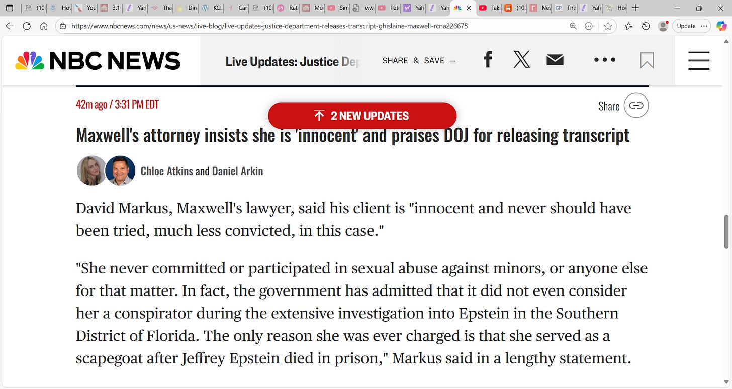 Maxwell is seeking to be freed/pardoned. For that, she'll swear on a stack of Bibles **whatever** Trump wants from her. In legal terms, regarding Trump's culpability Maxwell is a compromised, non-credible witness. Here, Maxwell's credibility is ZERO, ZIP, and NADA!