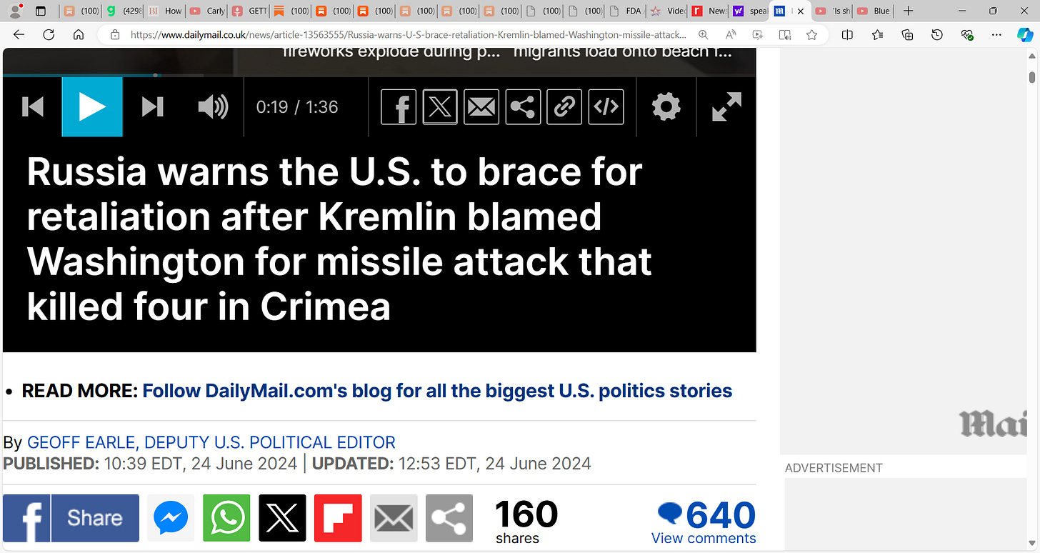 ‘The Kremlin has accused the U.S. of 'killing Russian children' after a Ukrainian attack on occupied Crimea with long-range missiles supplied by Washington and said there will be 'consequences'.
