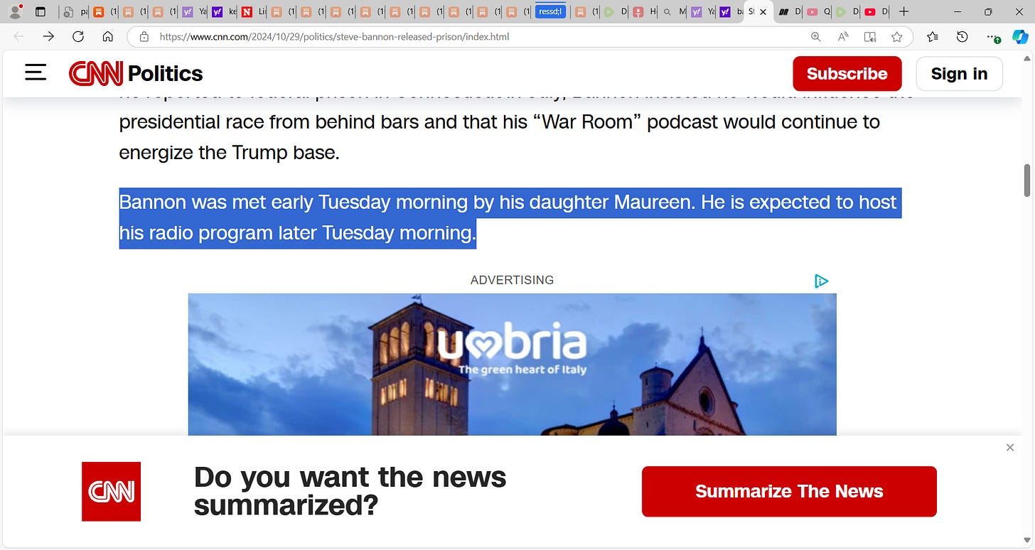 I lost that bet! I had bet that Bannon wouldn't be released until after the elections.