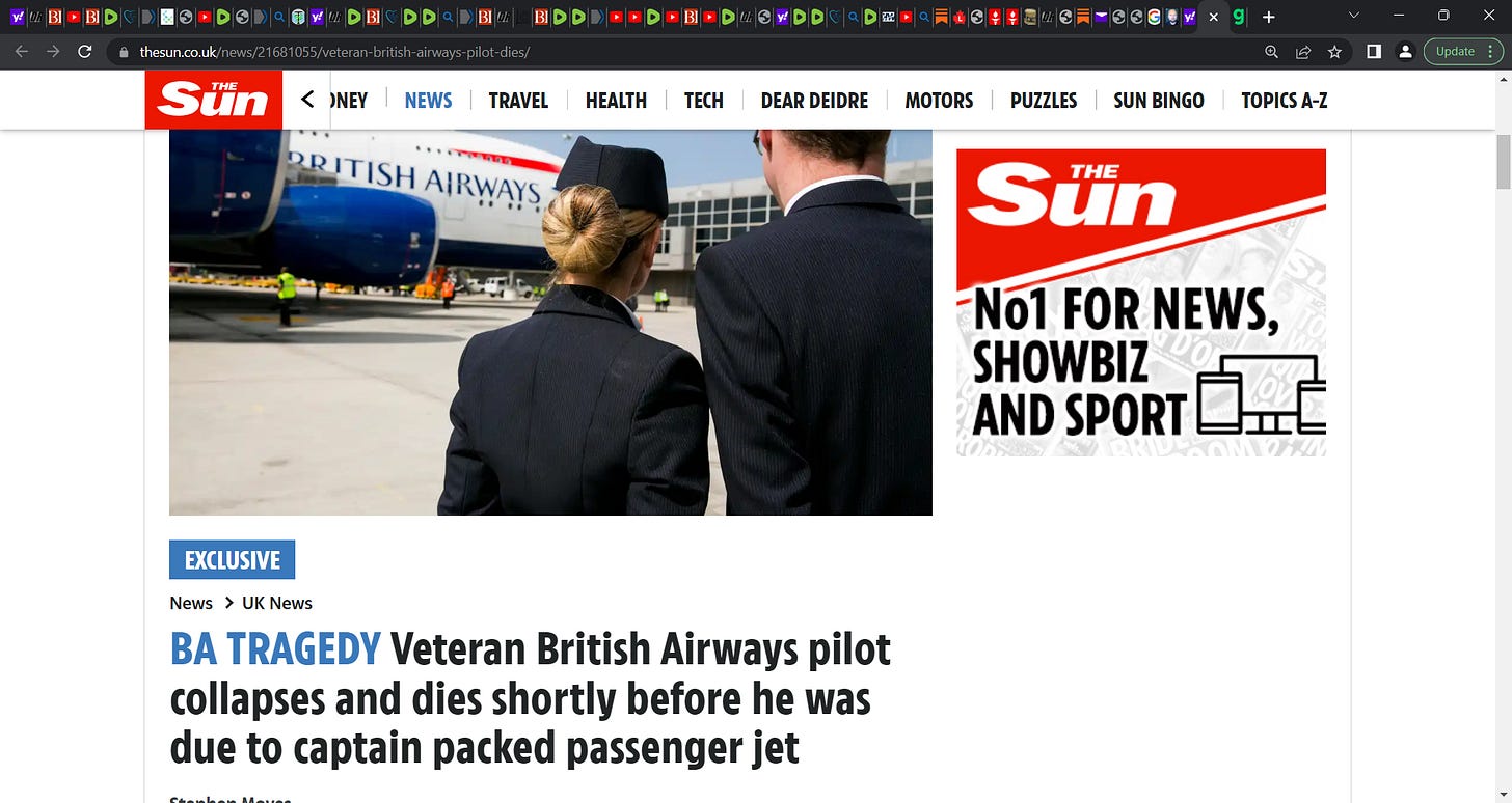 BRITISH AIRWAYS (BA) TRAGEDY: Veteran British Airways pilot collapses and dies shortly before he was due to captain a full packed passenger jet; did this pilot die due to the mRNA technology based