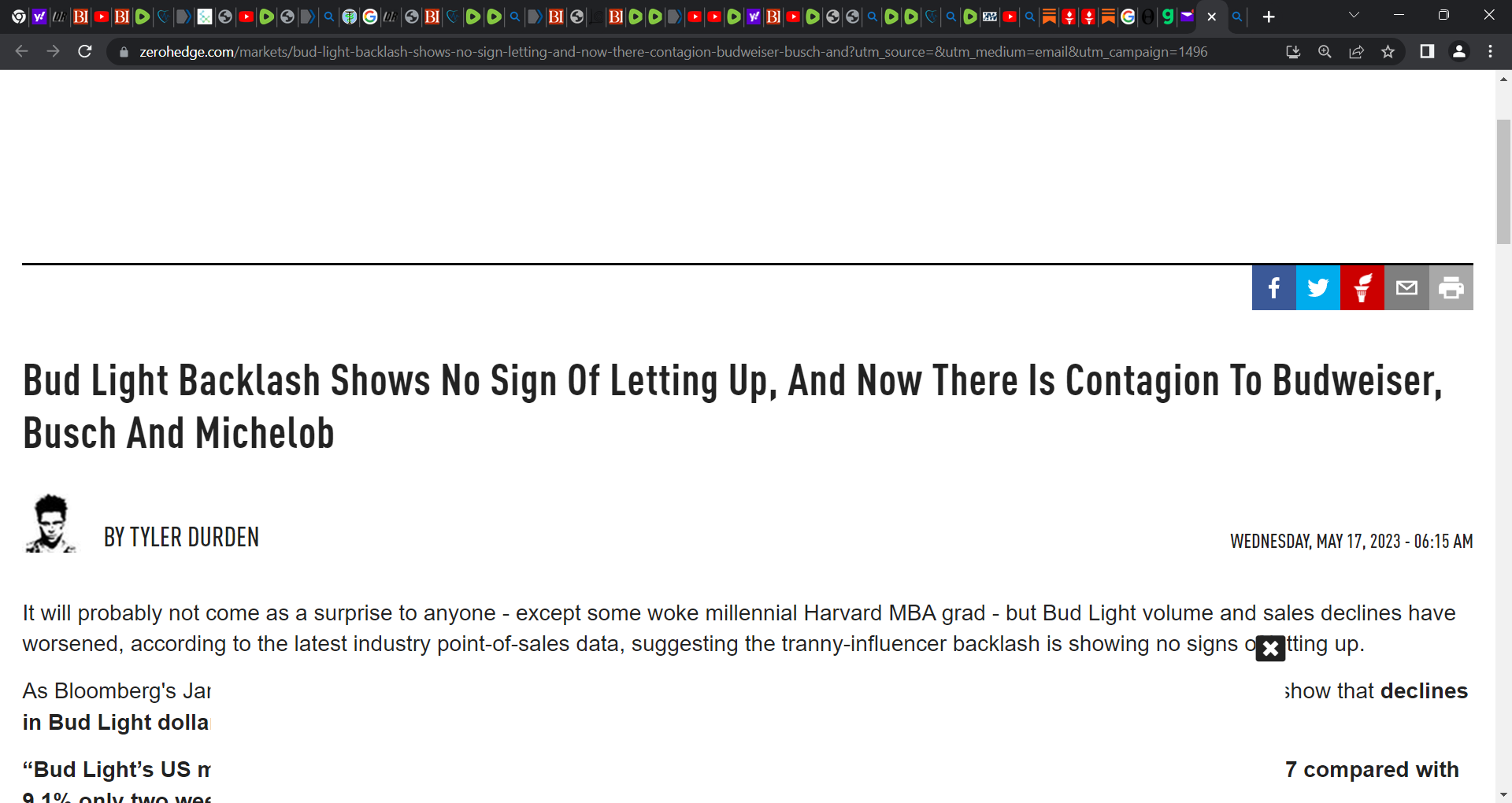Budweiser, Busch And Michelob also suffering contagion due to Bud Light Backlash and Bud Light Backlash Shows No Sign Of Letting Up; I love it, punishing the woke 'tolerant' cancel nutjobs! Shove your
