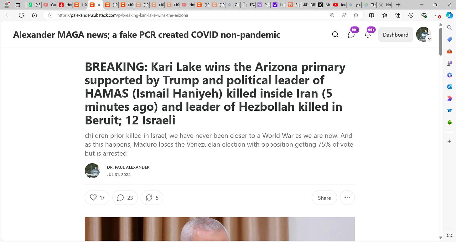 Alexander MAGA news; a fake PCR created COVID non-pandemic is a reader-supported publication. To receive new posts and support my work, consider becoming a free or paid subscriber.