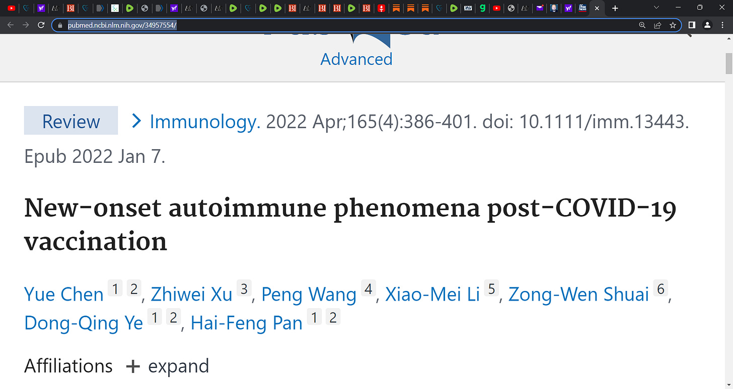 ‘Recently, new-onset autoimmune phenomena after COVID-19 vaccination have been reported increasingly (e.g. immune thrombotic thrombocytopenia, autoimmune liver diseases, Guillain-Barré syndrome, IgA nephropathy, rheumatoid arthritis and systemic lupus erythematosus). Molecular mimicry, the production of particular autoantibodies and the role of certain vaccine adjuvants seem to be substantial contributors to autoimmune phenomena.