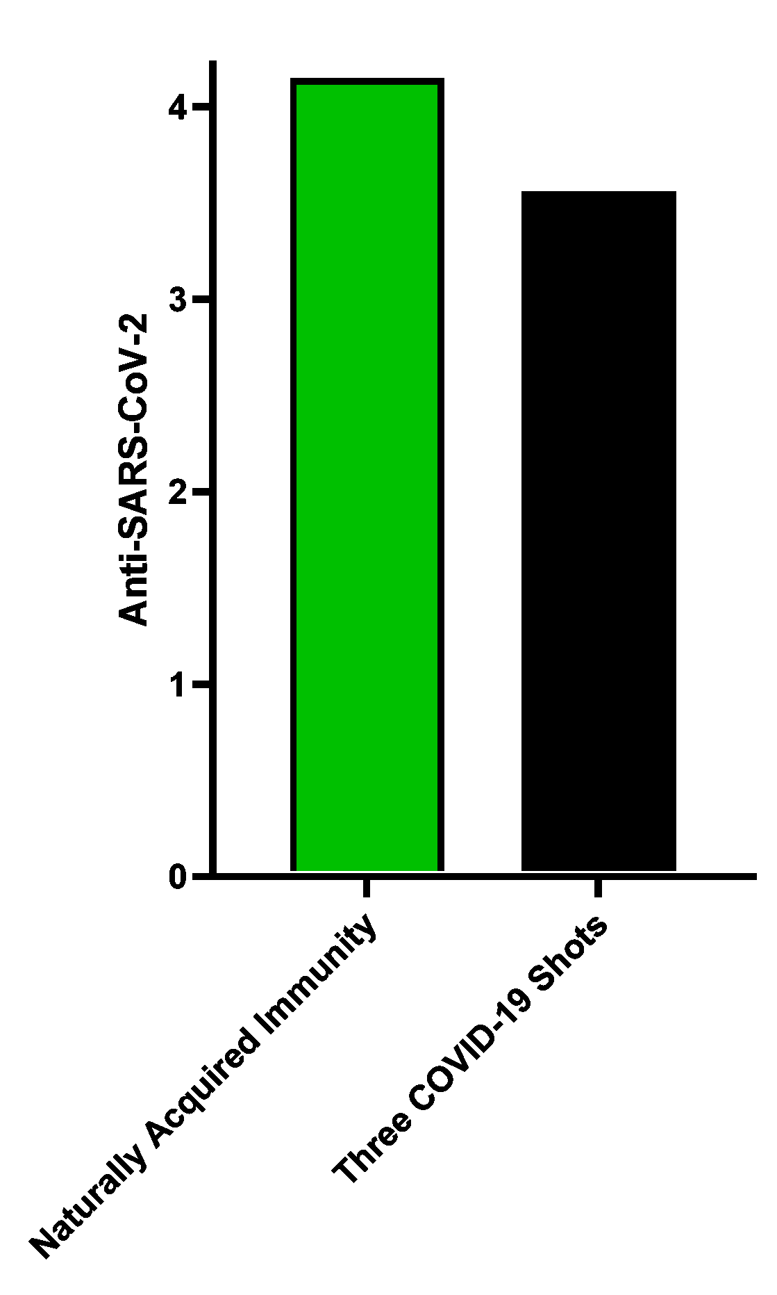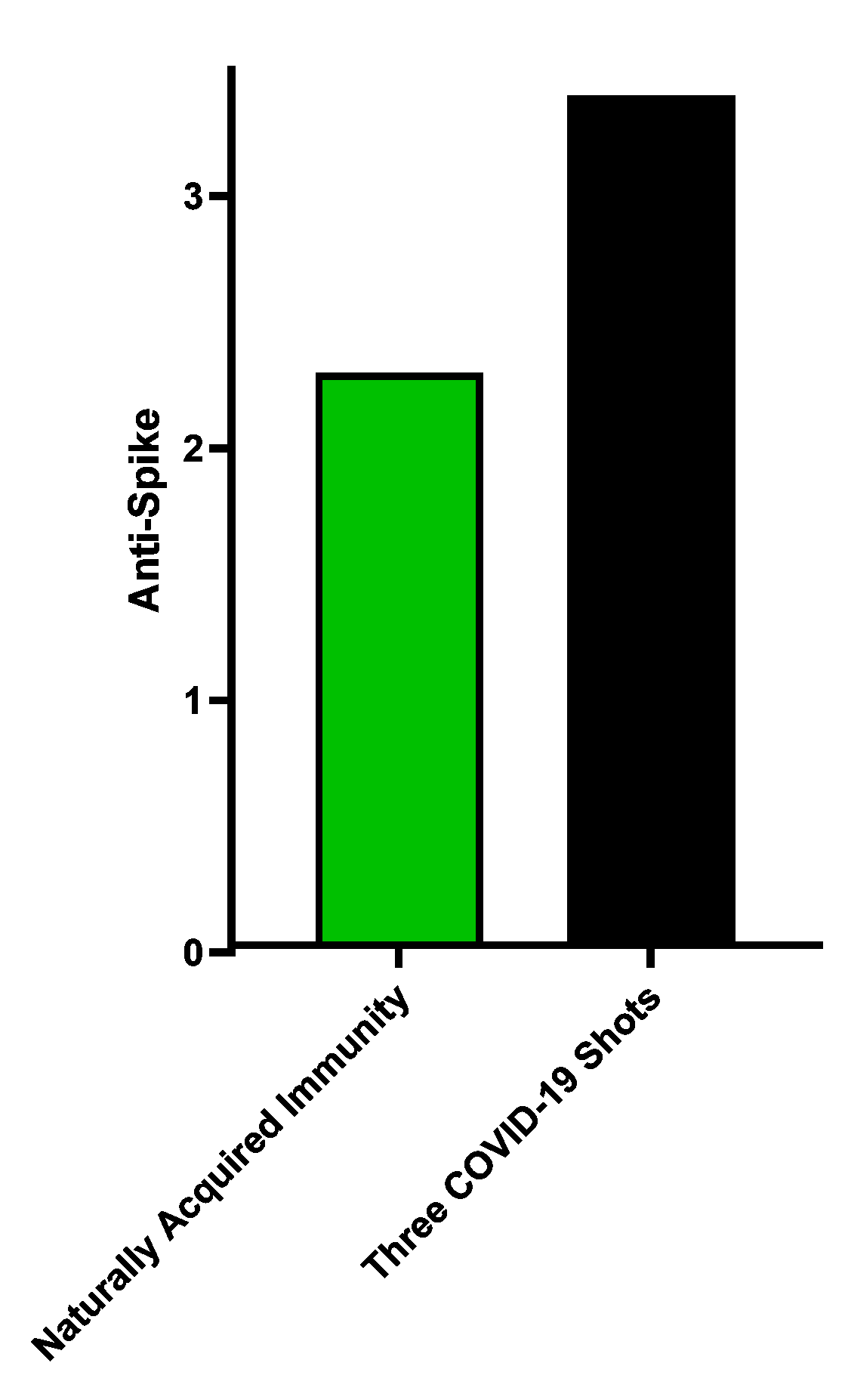 …now a very different conclusion is drawn. The antibody response is vastly superior to that in people who received the shots (who did not mount a response against this protein; what you see for the black bar is merely the ‘background signal’ for this test).