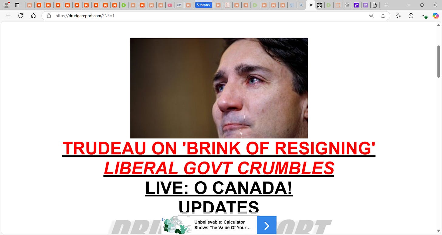 Canadian PM Justin Trudeau is about to fall, his government is collapsing & the traitorous man with the colored hat Jagmeet Singh pulled his opposition 'propping' support; Freeland has resigned