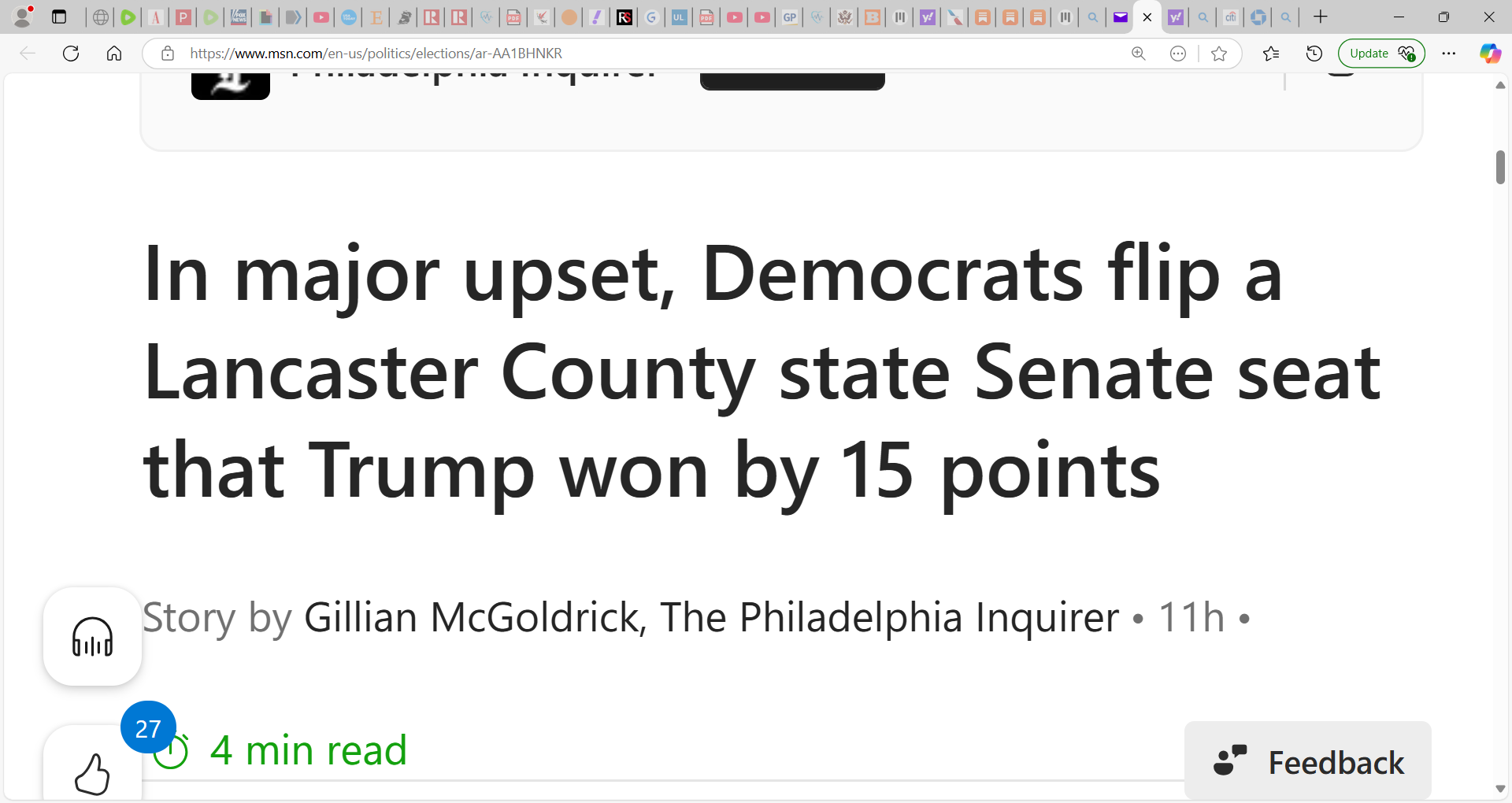 Canary in the coalmine? Flags? 2 major upsets 1.) Democrats flip a Lancaster County state Senate seat that Trump won by 15 points...hhhmmm; A Shock to the GOP From MAGA Country A county that went for