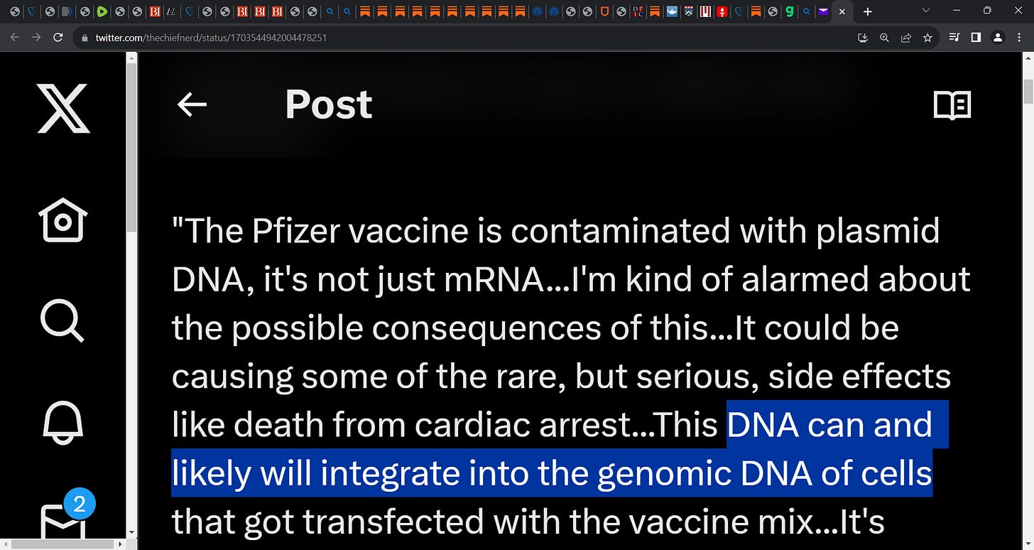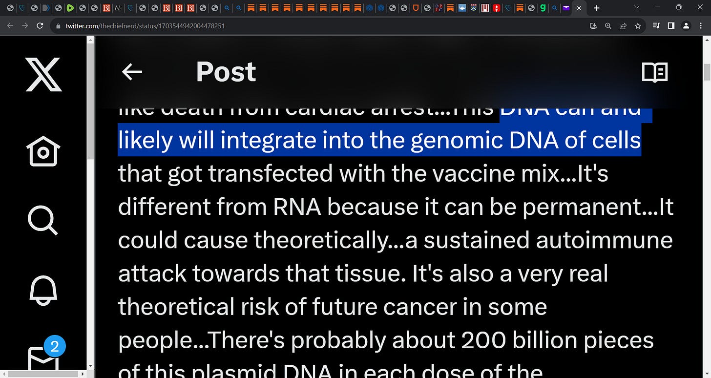 mRNA...I'm kind of alarmed about the possible consequences of this; can cause serious, side effects like death from cardiac arrest; DNA can and likely will integrate into the genomic DNA of cells