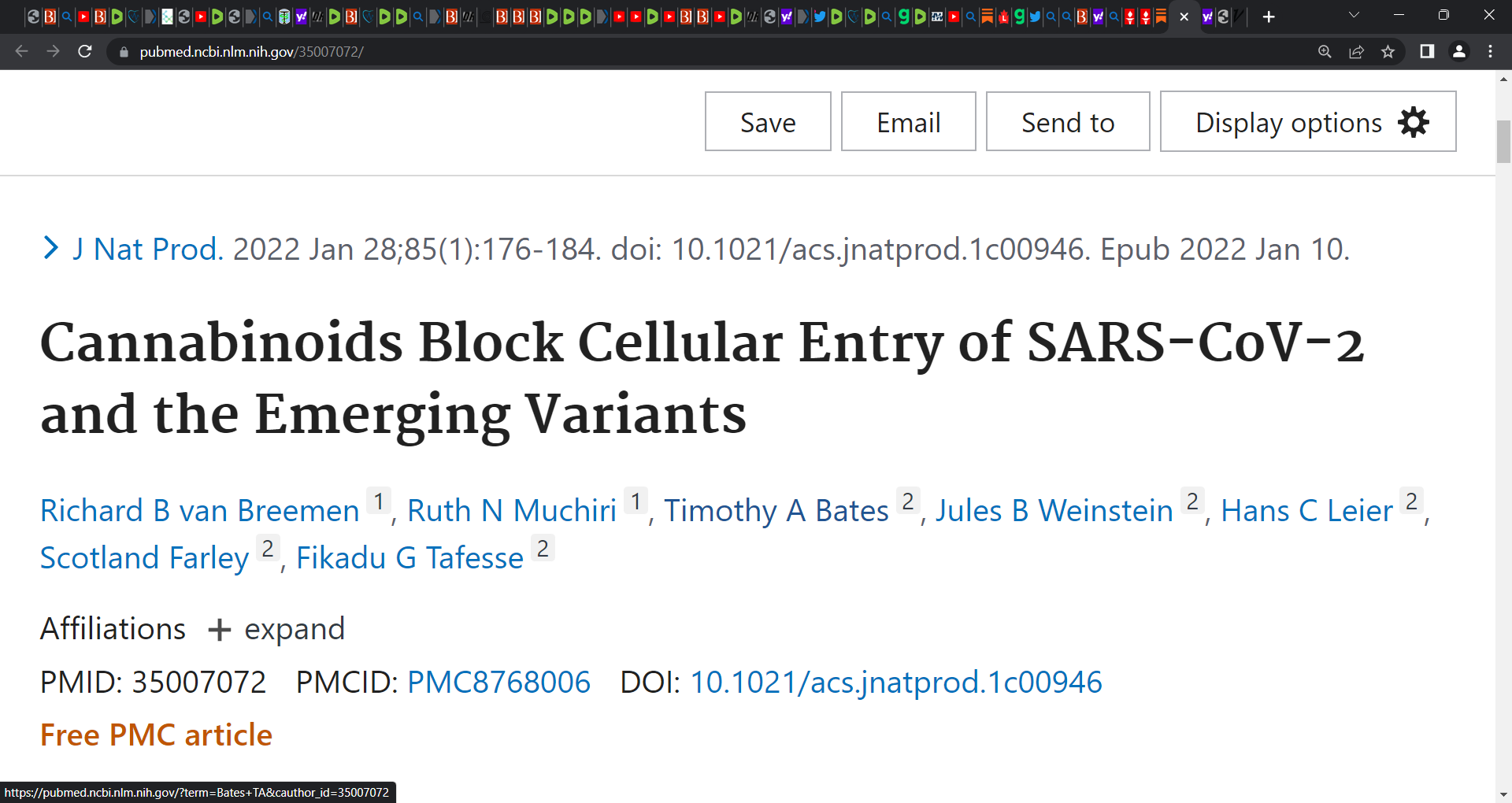 Cannabinoids Block Cellular Entry of SARS-CoV-2 and the Emerging Variants; In follow-up virus neutralization assays, cannabigerolic acid and cannabidiolic acid prevented infection of human epithelial