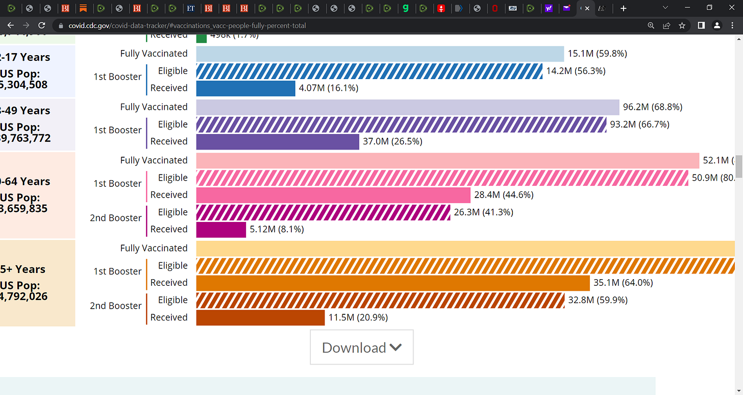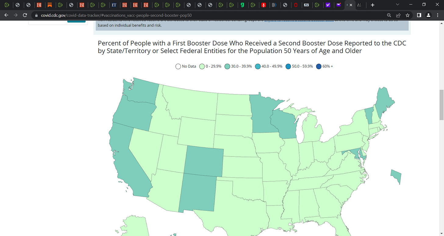 CDC data on COVID injection uptake & when you look at the booster uptake, you see that the public have figured out the scam; yes, let us keep pounding away at cracks & crevices at the fraud injections