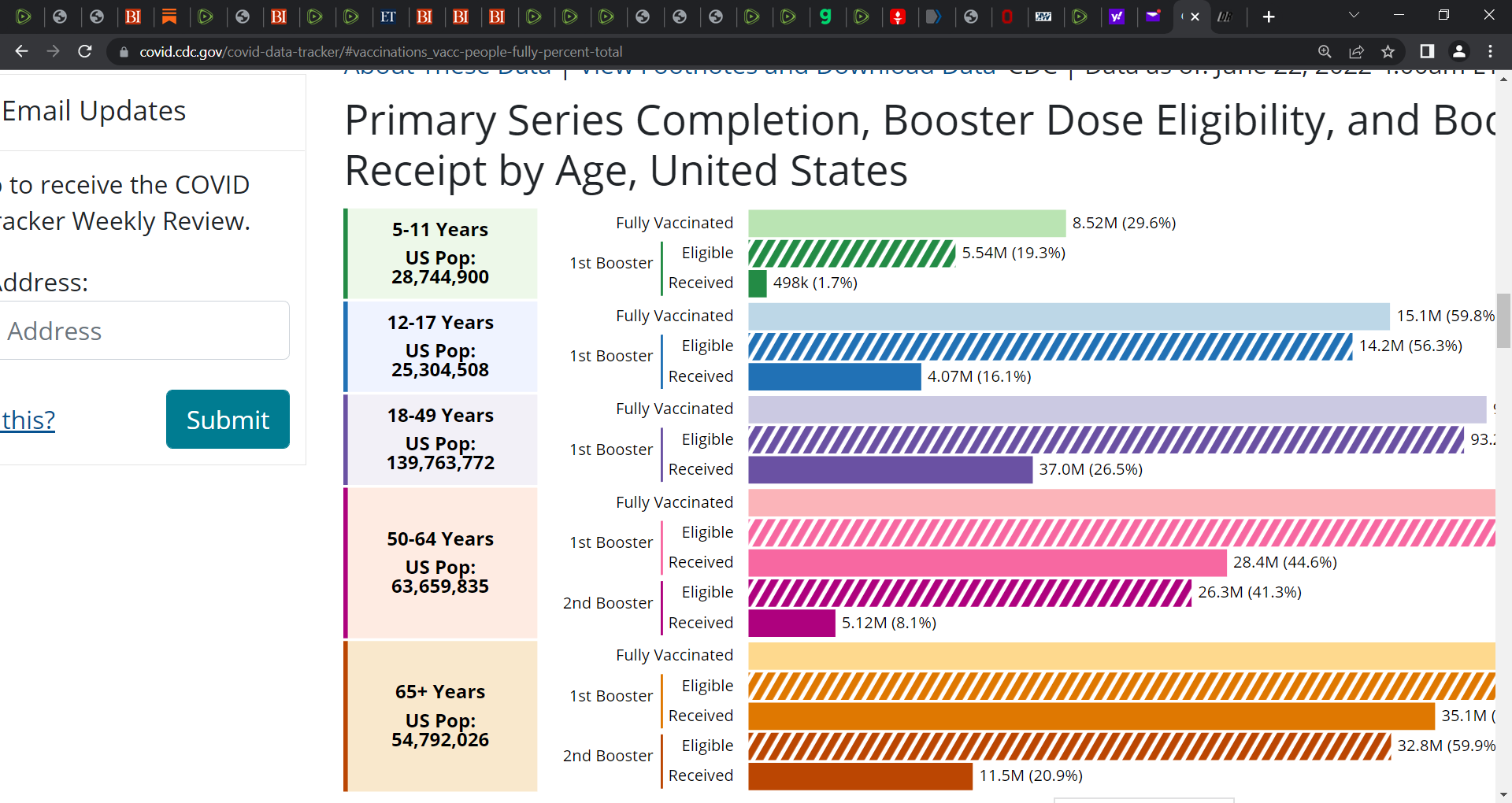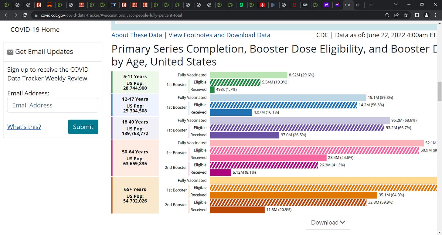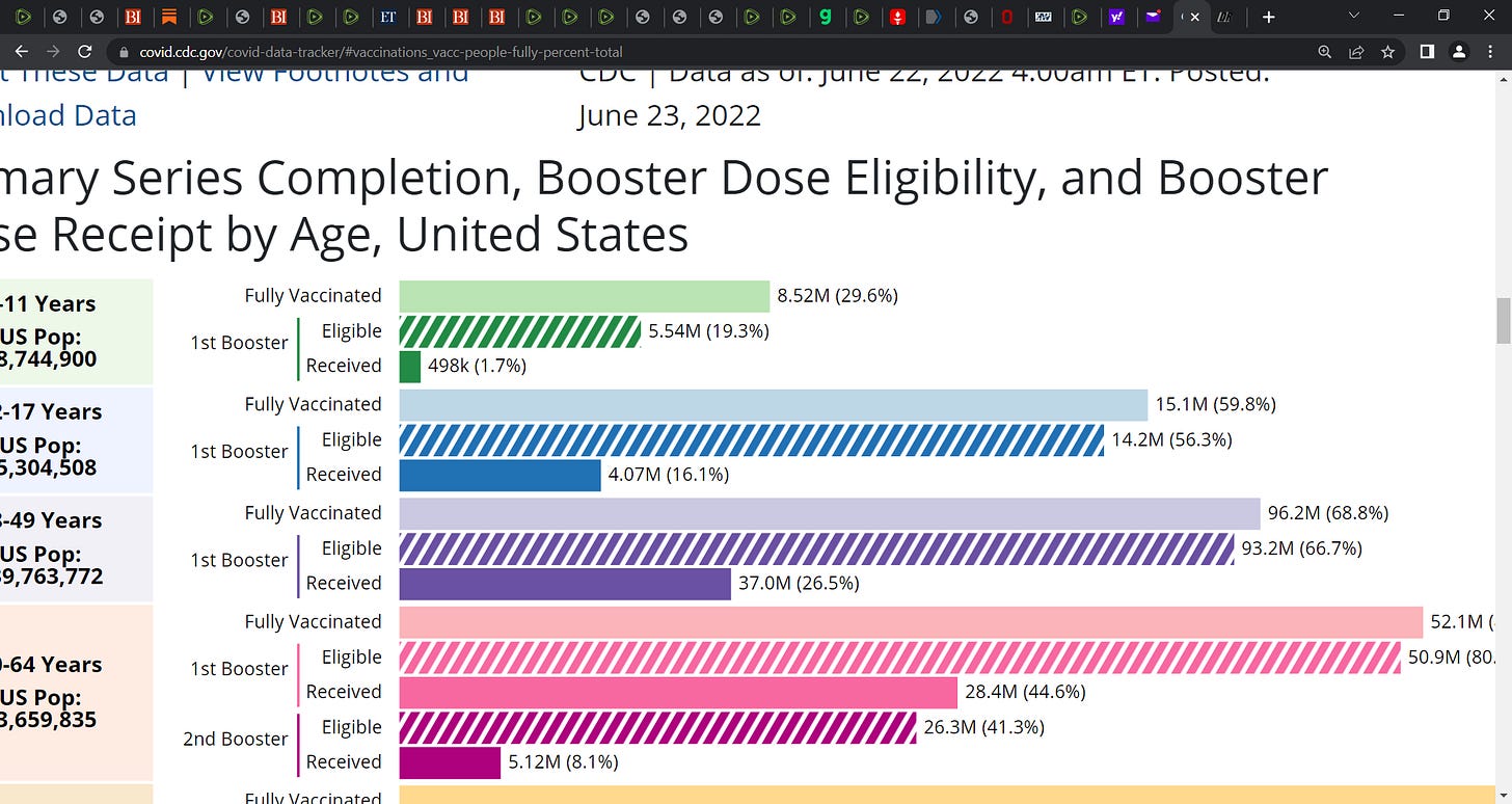 June 22nd, 2022; look at the dramatic decline in booster uptake by age-group