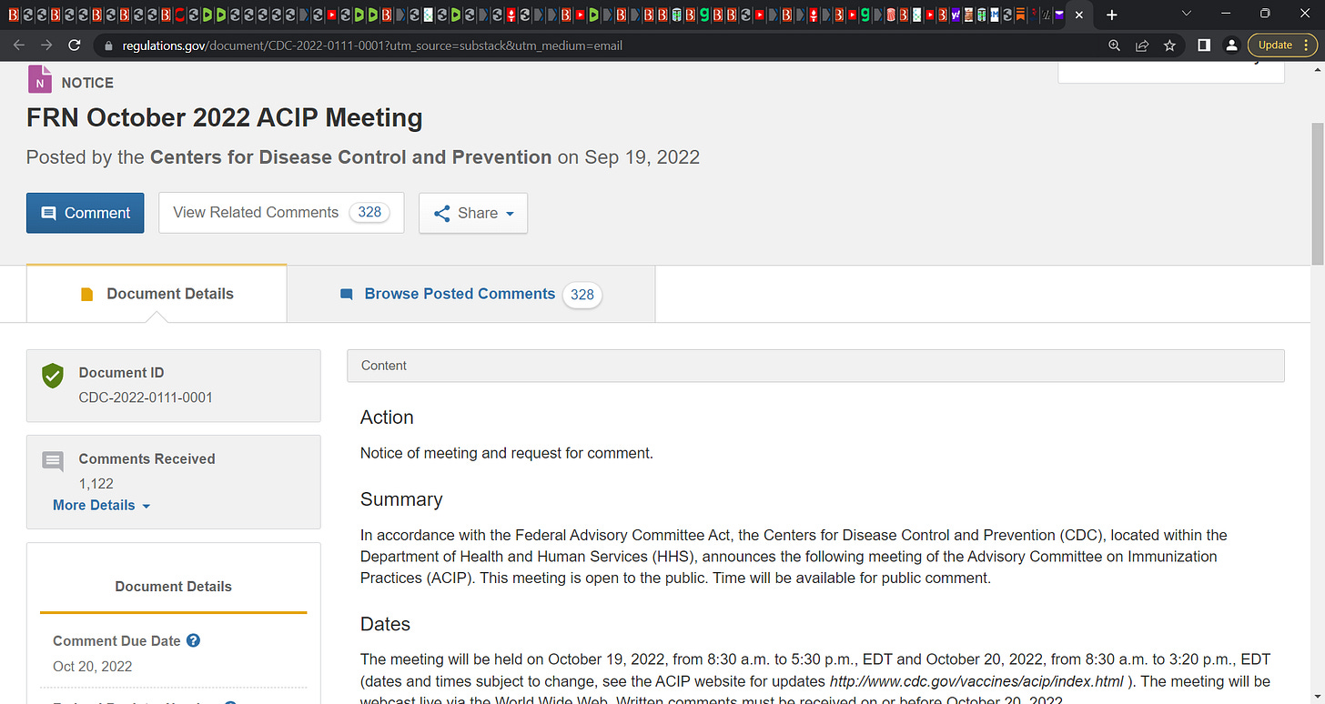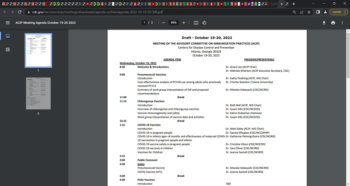'The die is cast': CDC MEETING OF ADVISORY COMMITTEE ON IMMUNIZATION PRACTICES on October 19th & 20th 2022; parents must say NO to these injections in their statistical zero risk children; say NO!
