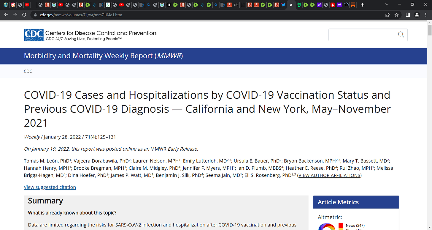 CDC published data in January 2022 from California and New York affirming that infection-acquired immunity was way more superior than vaccine-induced immunity: why was it covered up still today?
