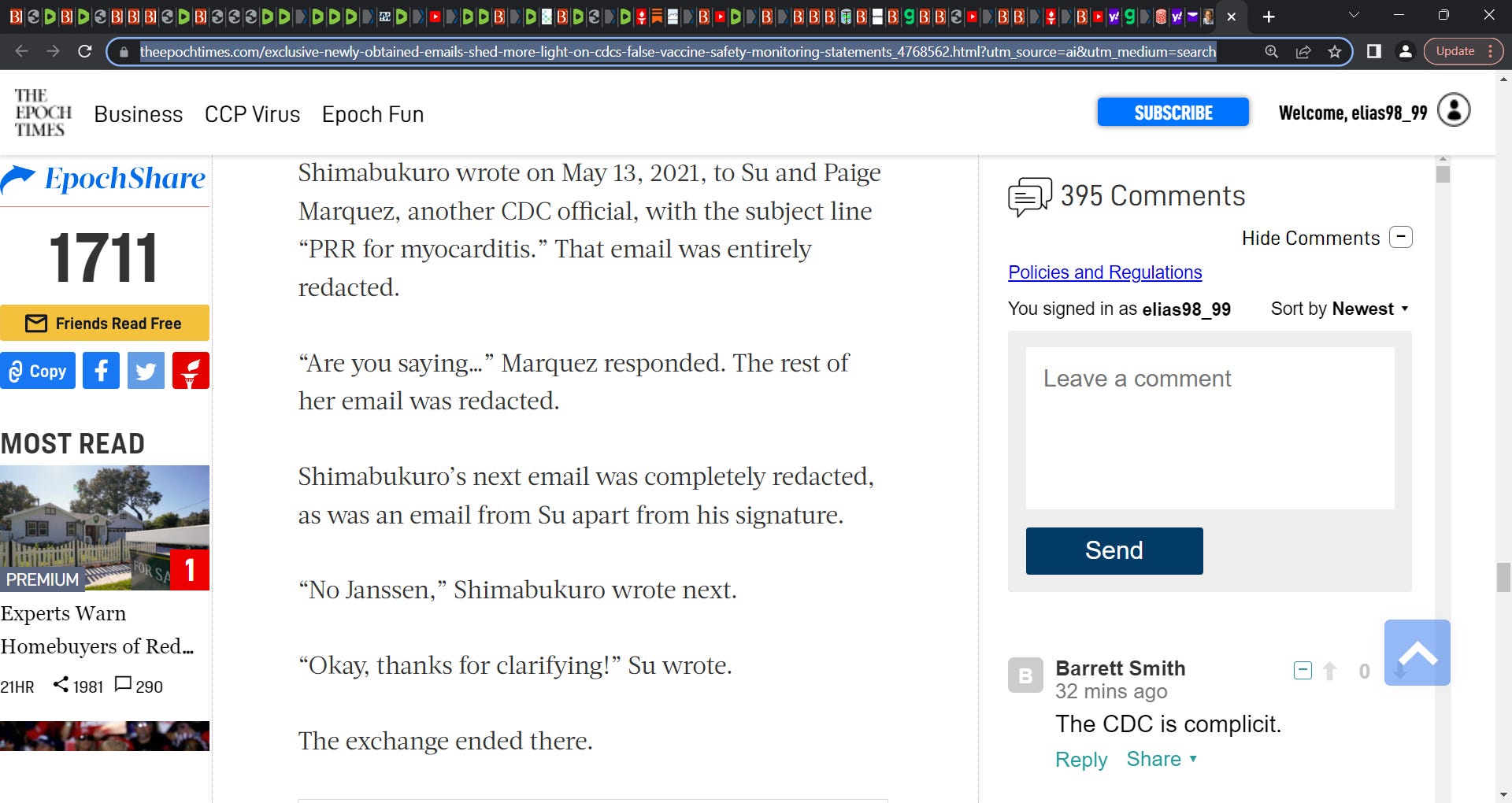 And other emails featured Su and Sharan talking to and about The Epoch Times’ queries, including a followup query noting that an initial response did not make clear whether the CDC had, in fact, performed PRRs.