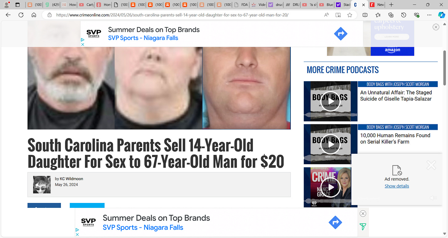 our young girls are kidnapped, and you never hear of them again, and sold into the sex slave filth world and abused, raped, and forced to be a child bride…locked down, chained down, cannot find a way to communicate to the outside world she or he is a slave…abused daily, forced sex, rape, by the husband, he gives her to his family and friends to rape…she is beaten…the husband family are like dogs, feral dogs as they abuse her…stoned, stoned to death even…we will never see her again…this is the world we are talking of…and many of our elite people, our government elected people, people in high society, Hollywood, academia, rich people, well off peoples, these are the basis of it…you see them hanging about with the likes of Bill Gates et al…