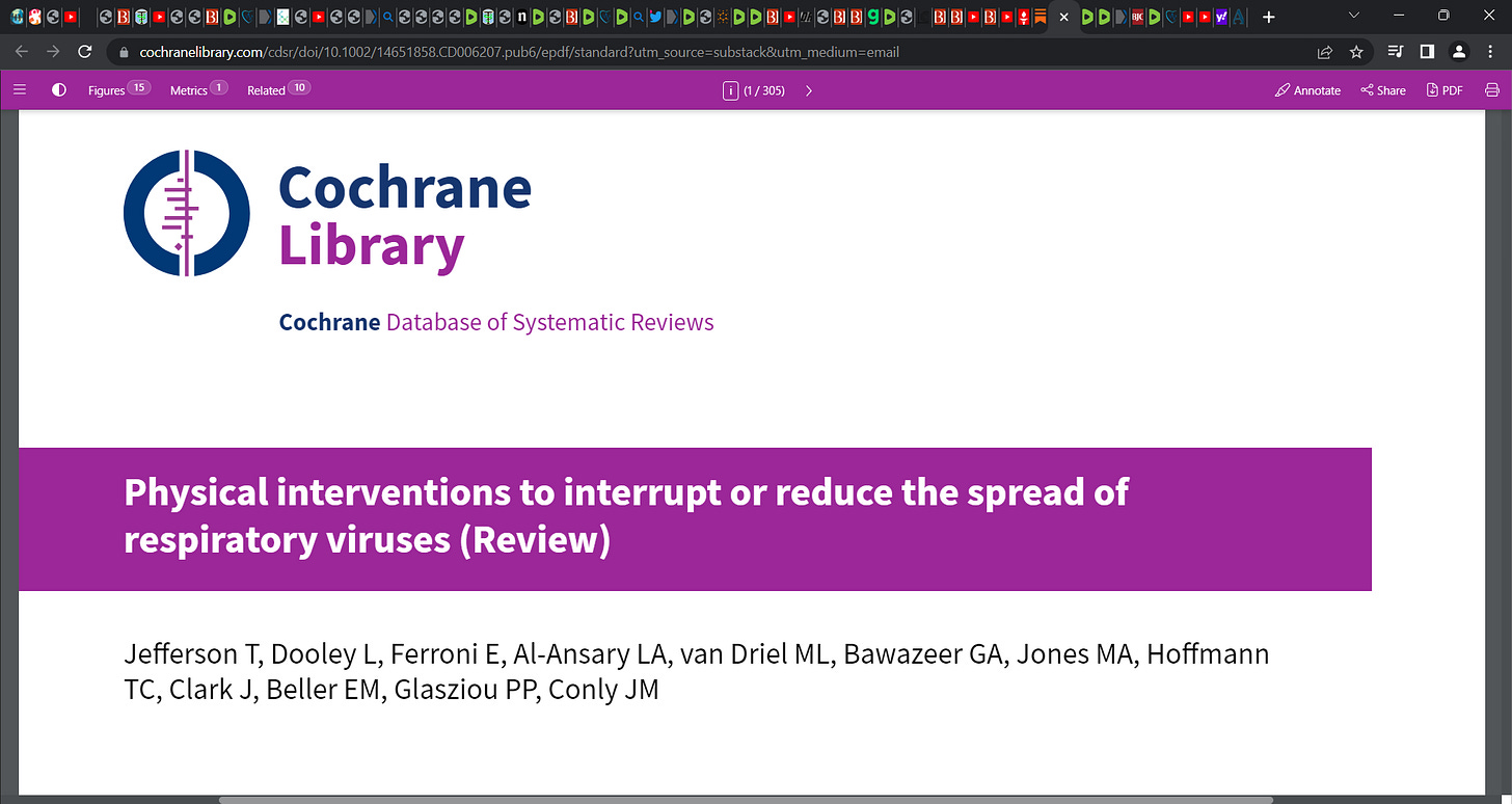 Cochrane Review shows COVID face masks are worthless: Wearing masks in the community probably makes little or no difference to the outcome of influenza-like illness (ILI)/COVID-19 like illness