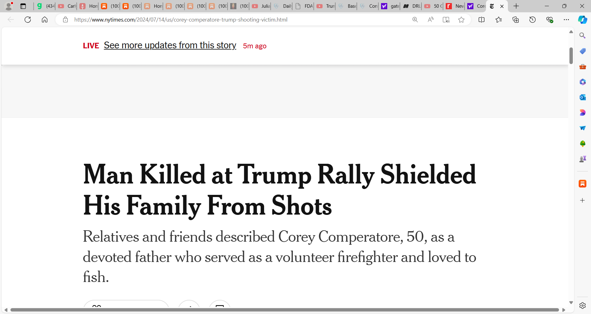 Mr. Comperatore, of Sarver, Pa., had two daughters — Allyson, 27, and Kaylee, 24 — and was “definitely a family man,” according to a longtime friend, Jeff Lowers, 63. He and Mr. Lowers were volunteer firefighters, and Mr. Lowers said that Mr. Comperatore’s quick instincts appeared to come into play during the shooting. Mr. Lowers said he learned about that account from Mr. Comperatore’s wife, Helen.