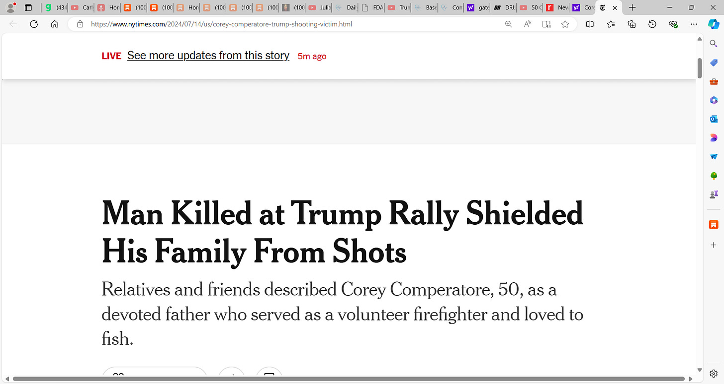 Corey Comperatore, 50, killed at Trump's rally when POTUS Trump was shot, was a devoted father who served as a volunteer firefighter and loved to fish; we must not forget him! He shielded His Family