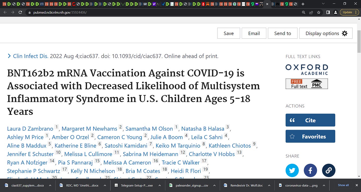 2)Let us focus on the gross deception by the CDC in counting MIS-C cases and moving to omit them. This my friends is what the CDC has done all along, since the start of COVID, as it functioned to lie and deceive the public. In doing it here, they produced analysis to defraud you to think the Pfizer vaccine confers protection on MIS-C.