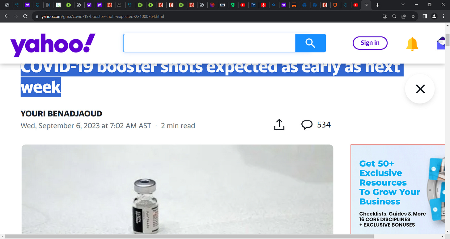 COVID-19 booster shots expected as early as next week; what you need to know is that it is already obsolete and will drive more sub-variants like EG.5 and BA.2.86 etc. It is ludicrous that they are