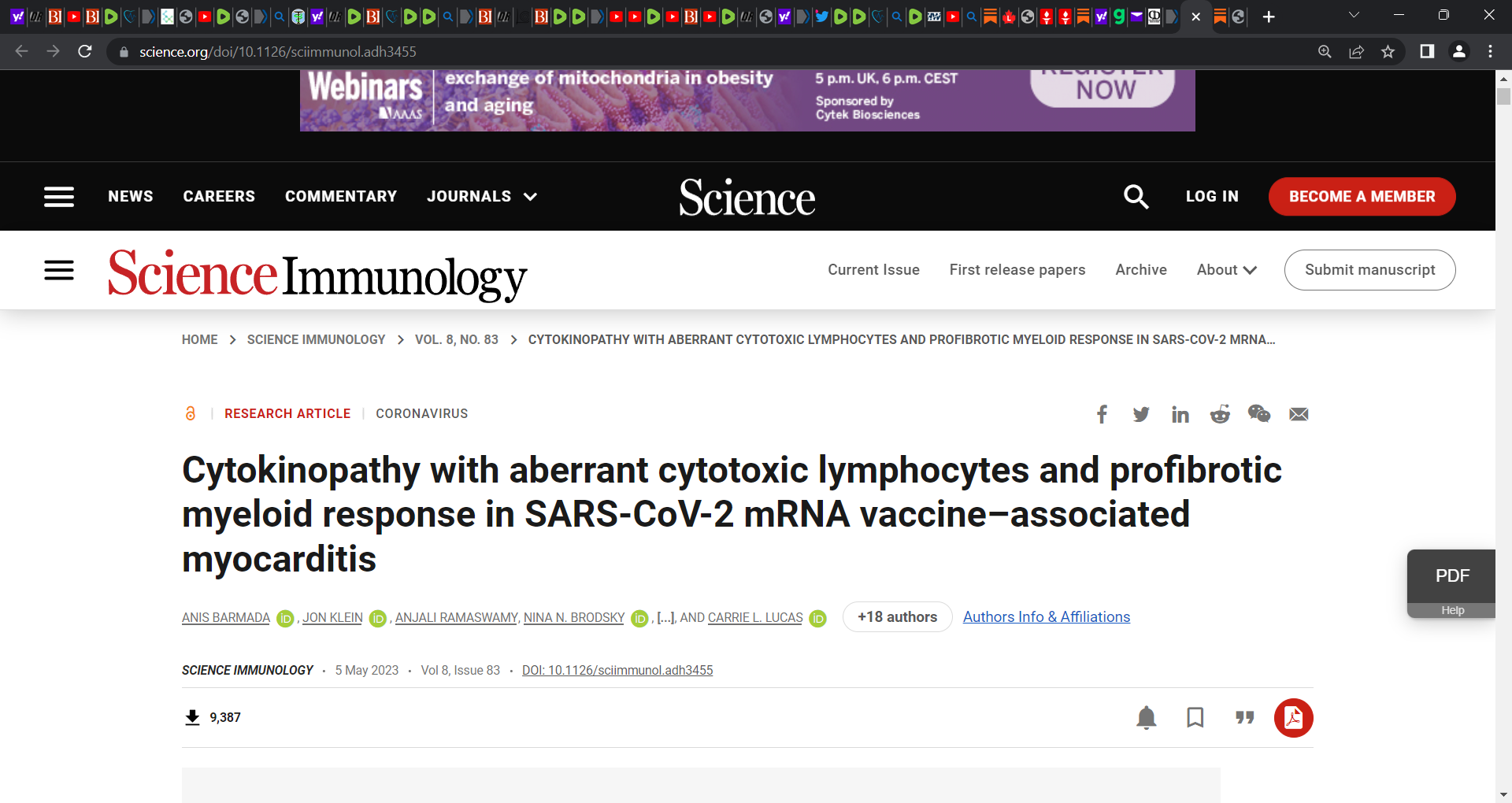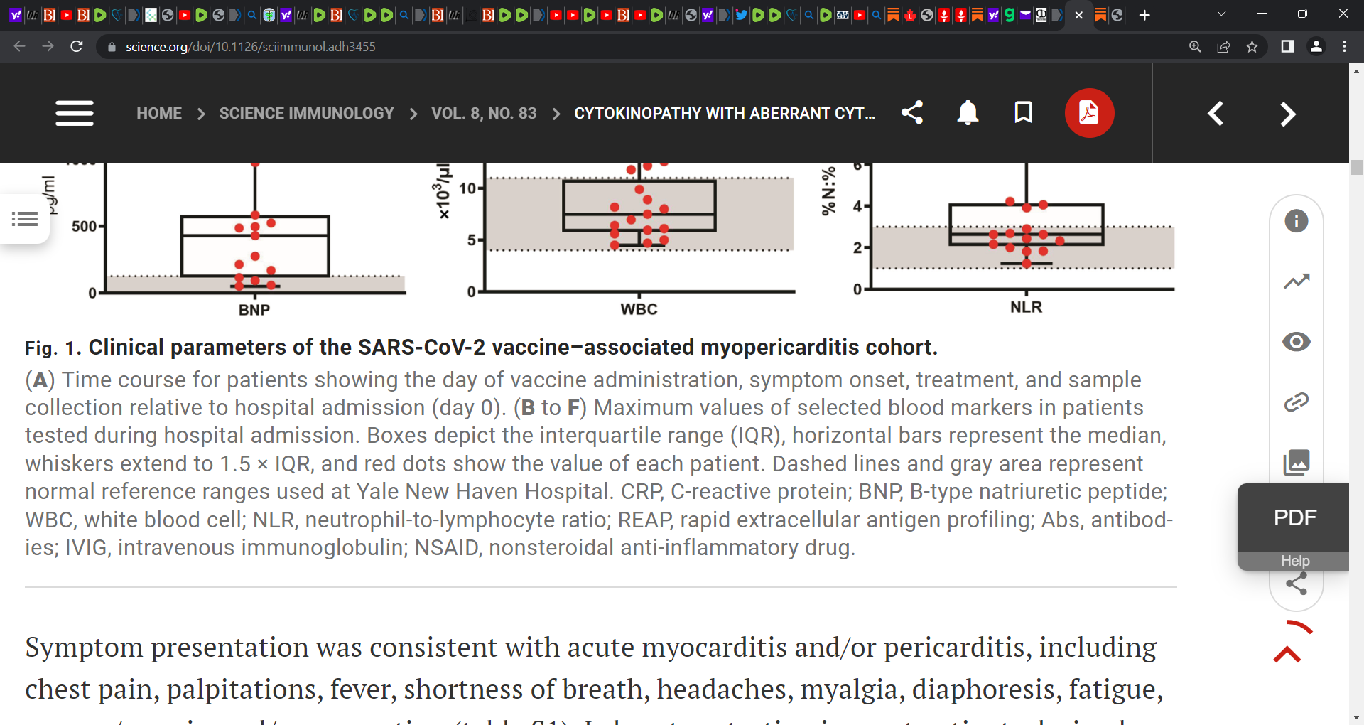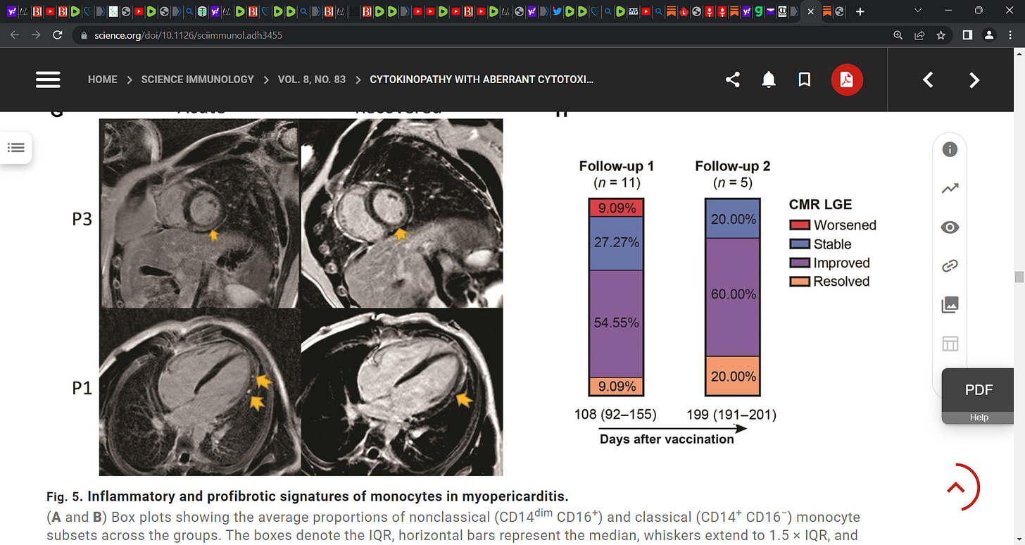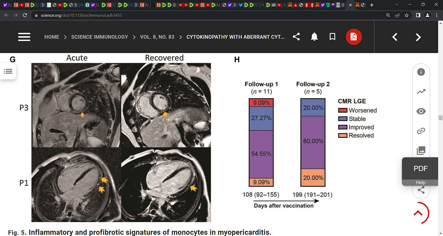 I love it when the CDC and folks like the devil in carnate Peter Hotez claim that there's nothing to worry about since most cases of myocarditis are mild. Well, the clinical presentations could be mild to subclinical. But the intermediate and longterm sequelae are anything but mild. The risk for life altering cardiac disease is increased. In fact increased to the point where early death can be anticipate or if lucky, need for a hopefully successful heart transplant. The scar tissues advance all the time I believe. And if a patient continues to produce spike protein, and who really knows how long this occurs, the damage will only continue. IMHO these people require longterm medical management. And based on some insights related to research I was involved in, it's possible that management of post-myocarditis disease could be enhanced with the use of doxycycline which has antiinflammatory effects as well as the ability to inhibit matrix metalloproteinases (MMPs), the latter playing an important role in scar tissue advancement.