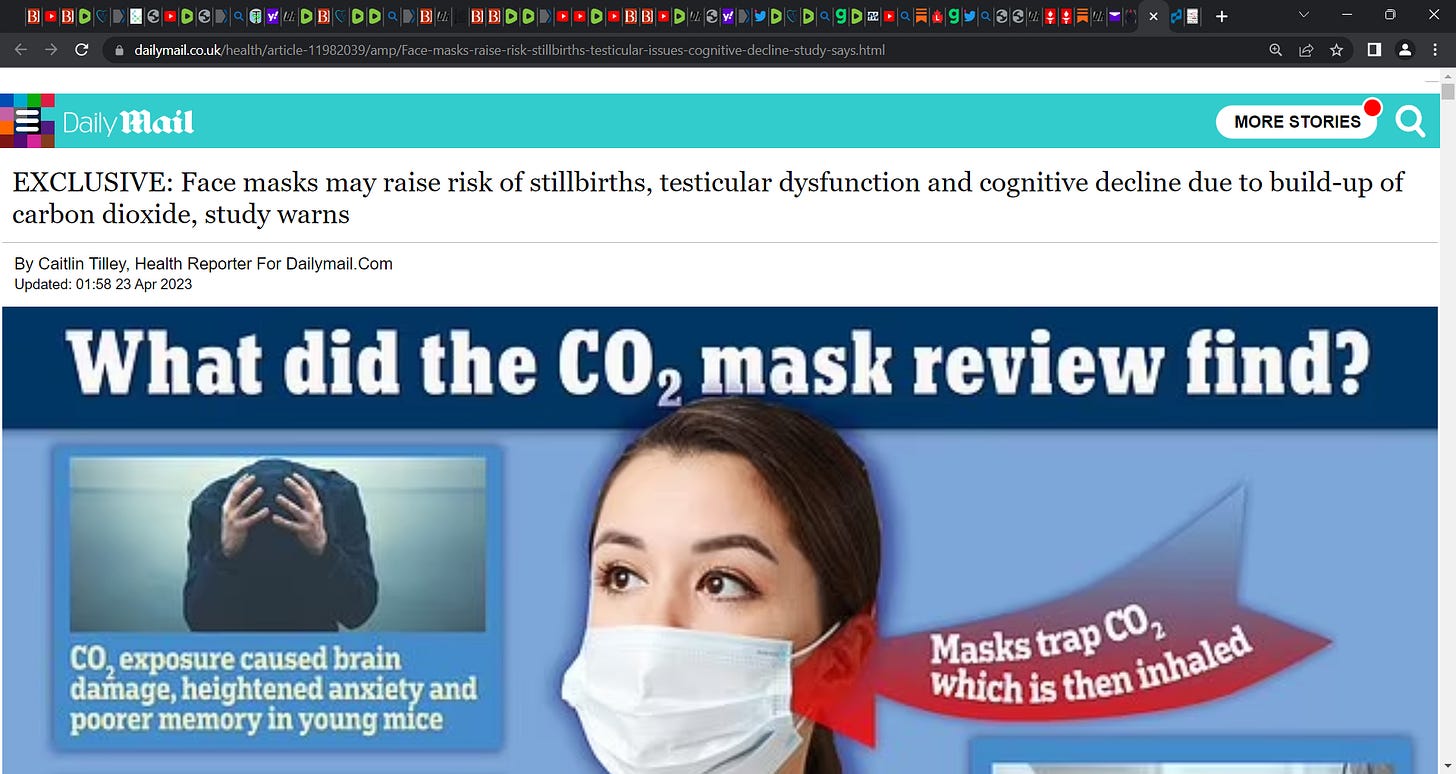 COVID face masks: Study warns of risk of COVID face masks pointing to a rise in stillbirths, testicular dysfunction and cognitive decline due to build-up of carbon dioxide! Fresh air has around 0.04%
