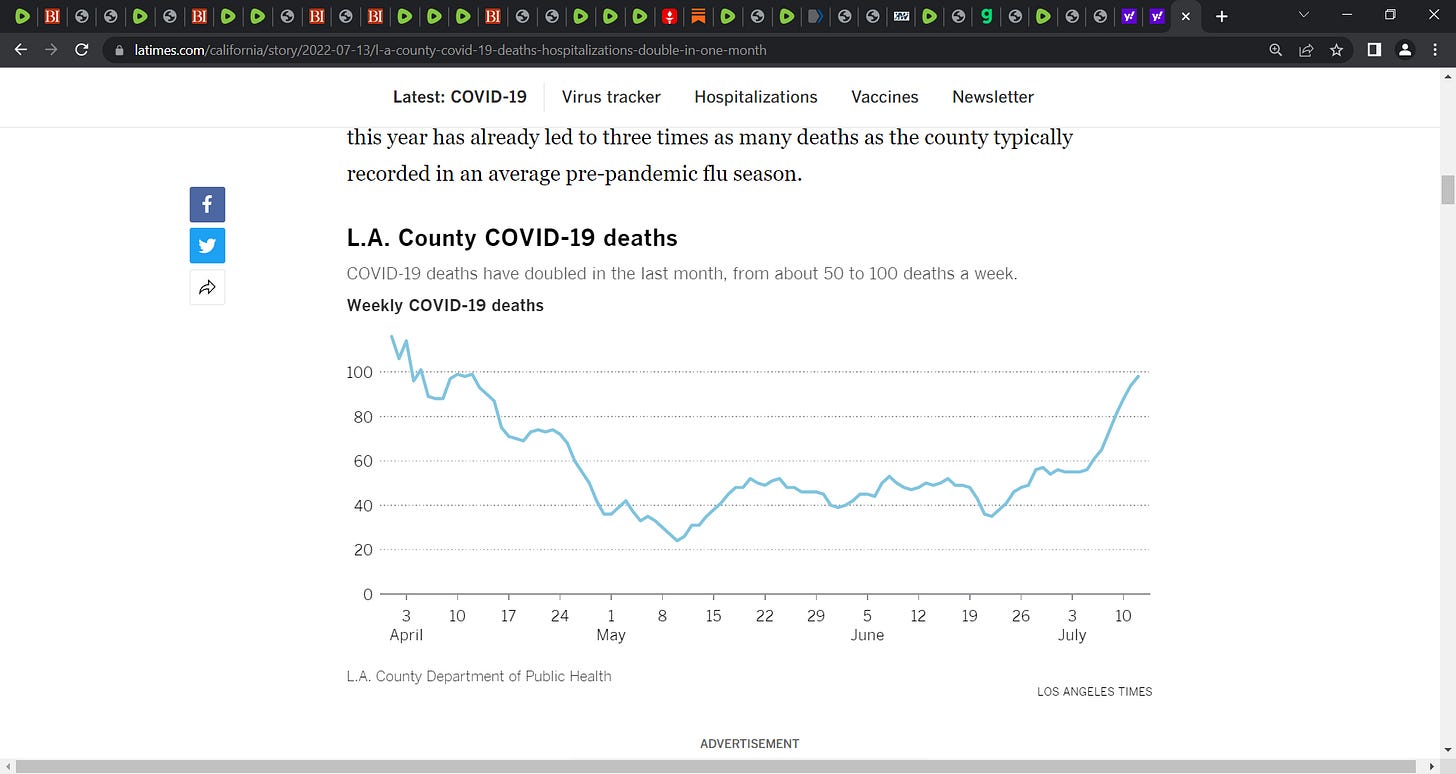 L.A. County coronavirus deaths rising fast as ultra-contagious BA.5 fuels infection wave