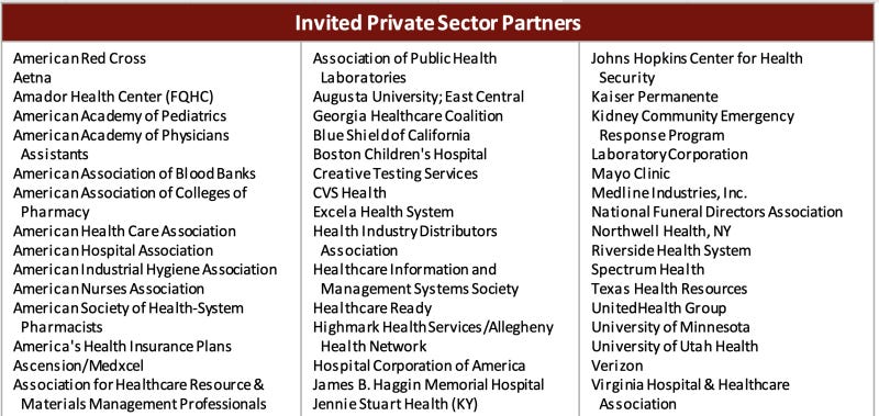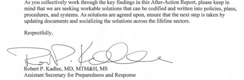 I’ve only followed up on this report in light of growing focus on the person who coordinated Crimson Contagion: Robert Kadlec, who served in the Trump administration as Assistant Secretary of Health and Human Services, Preparedness and Response. It was he who also ran the Covid response between HHS and the Department of Homeland Security.