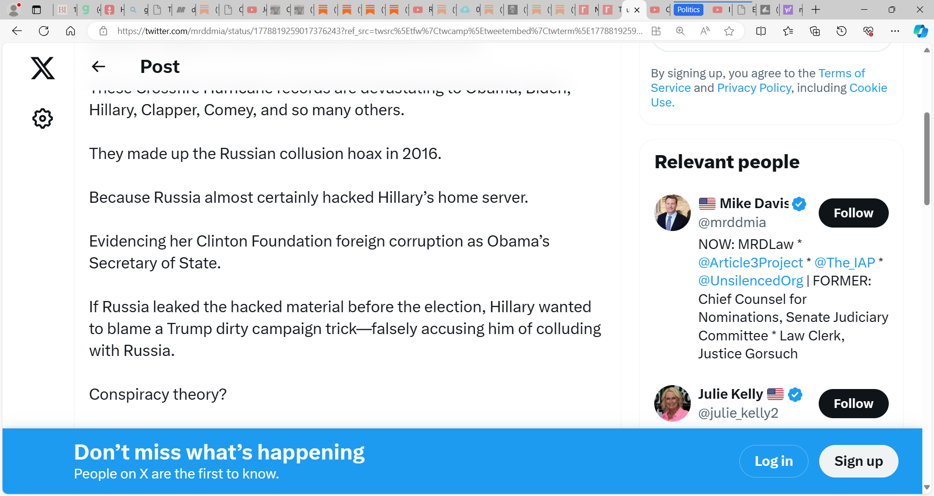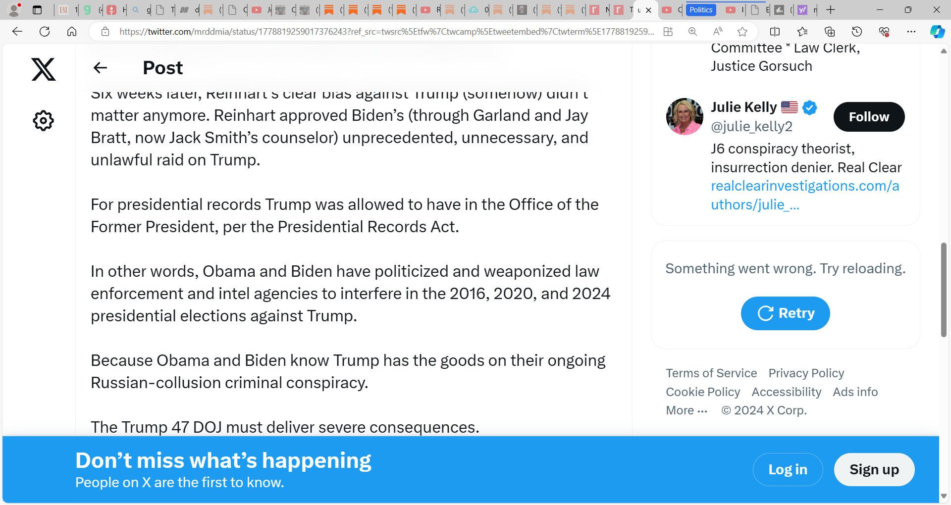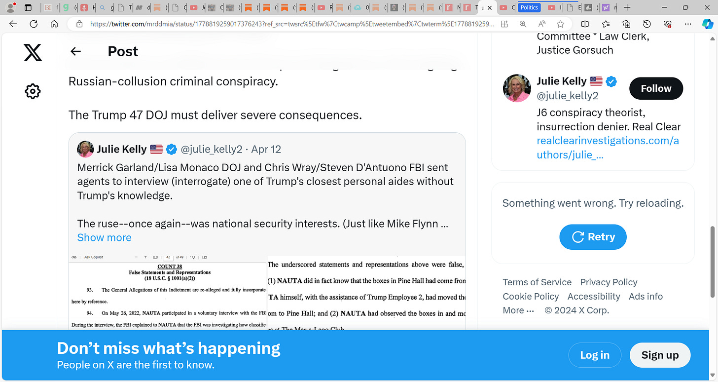 In other words, Obama and Biden have politicized and weaponized law enforcement and intel agencies to interfere in the 2016, 2020, and 2024 presidential elections against Trump. Because Obama and Biden know Trump has the goods on their ongoing Russian-collusion criminal conspiracy.