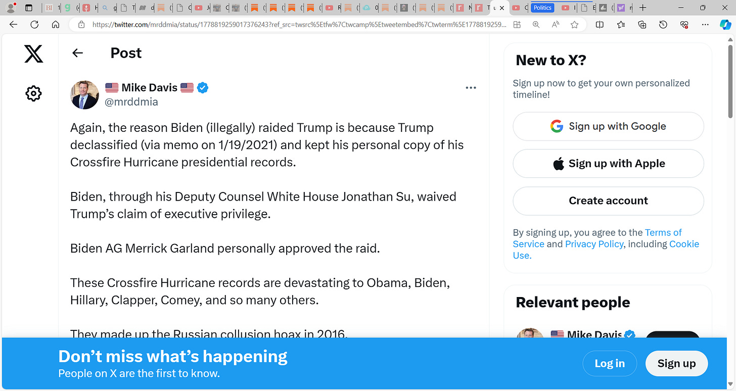 Crossfire Hurricane: Mike Davis/Julie Kelly punishingly reveals the reason Biden (illegally) raided Trump's Mar-a-Lago is because Trump declassified (via memo on 1/19/2021) and kept his personal