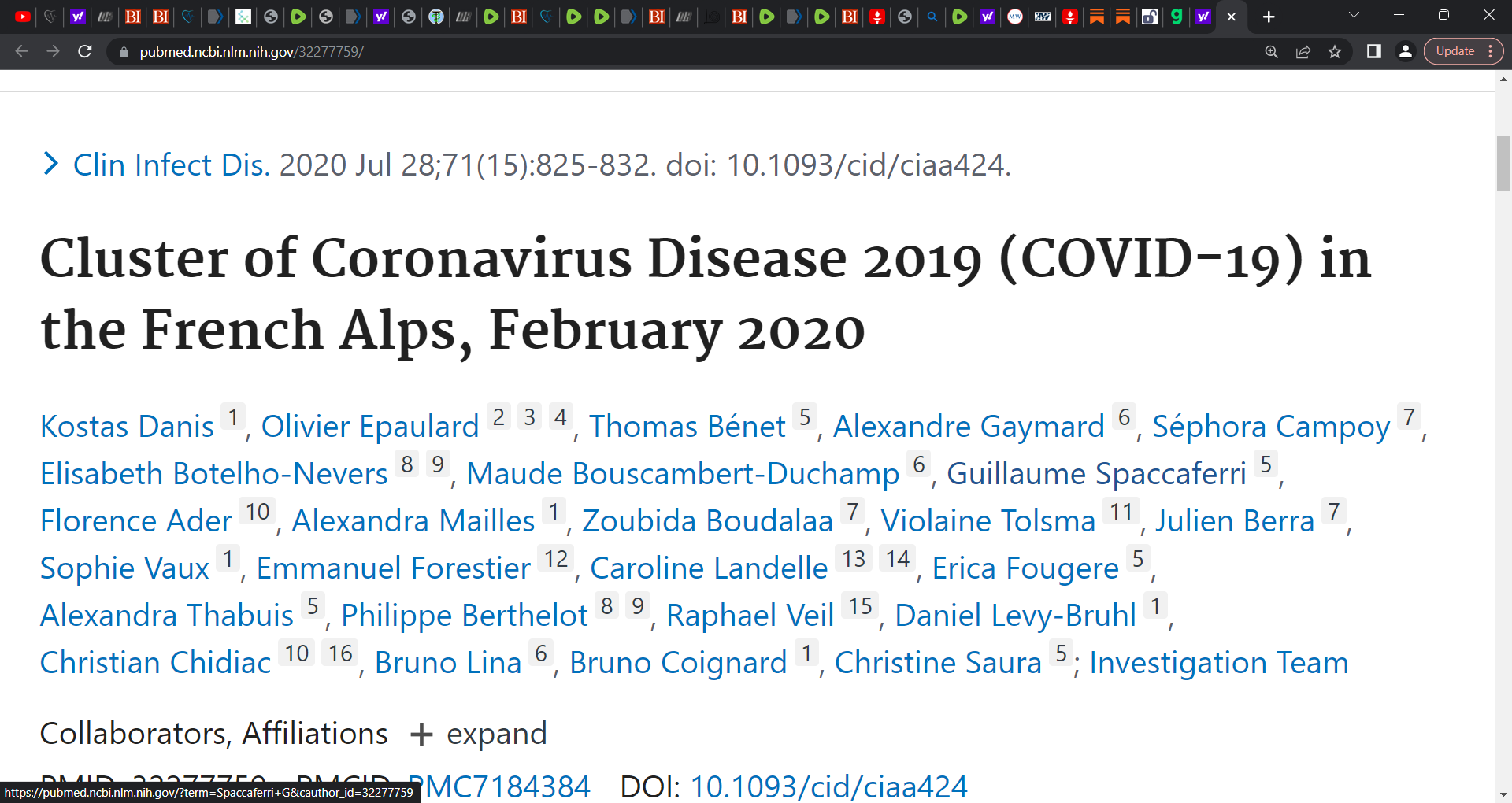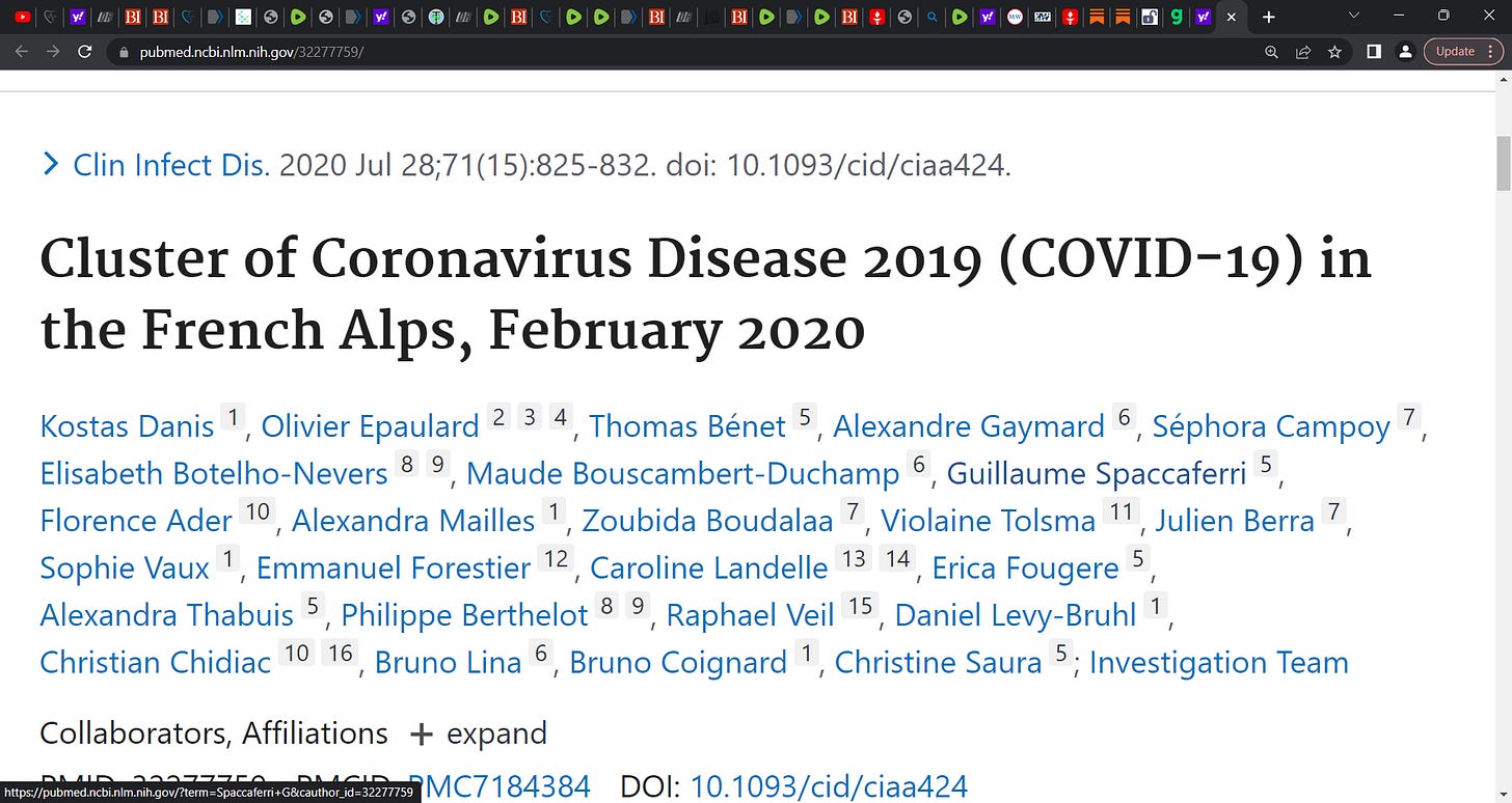 ‘Background: On 7 February 2020, French Health authorities were informed of a confirmed case of severe acute respiratory syndrome coronavirus 2 (SARS-CoV-2) in an Englishman infected in Singapore who had recently stayed in a chalet in the French Alps.