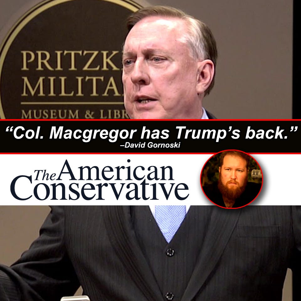David Gornoski's excellent piece in The American Conservative on Trump picking Colonel Douglas Macgregor as NSA Director or Secretary of Defense; Make Way for the Colonel as Douglas Macgregor would